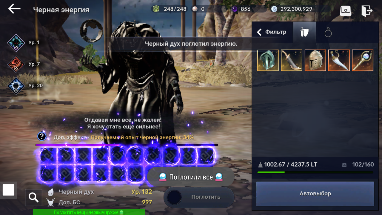 ✅ Авто поглощение черным духом вещей и энергии