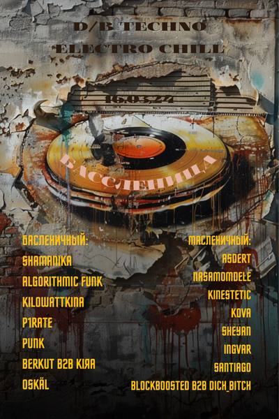 Вводные: Стена заброшенного здания, граффити на стене - съедобный блин в виде пластинки, минимализм.