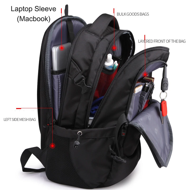 AIWITHPM Swiss Multifunctional External USB Charge Port Laptop Bag Waterproof 16" Laptop Backpack Schoolbag Travel Bag Rucksack - Купить с бесплатной доставкой