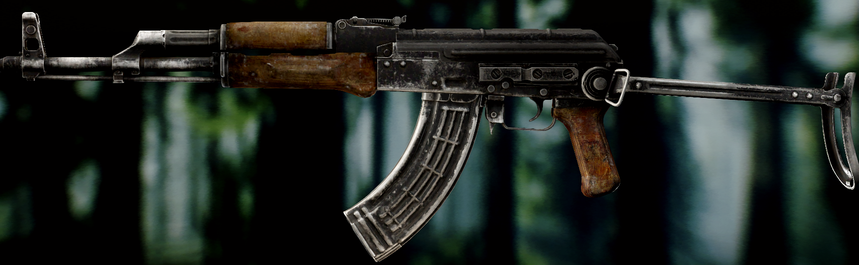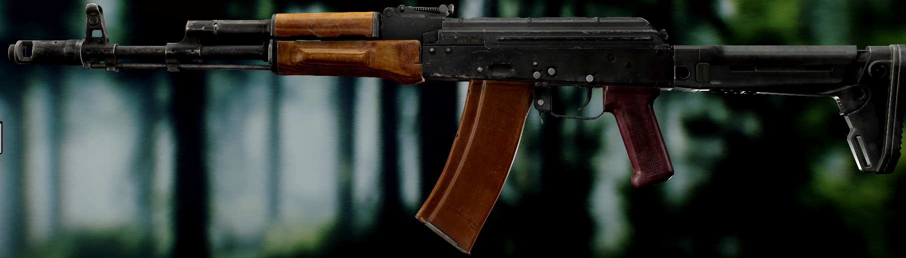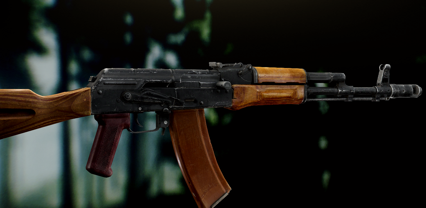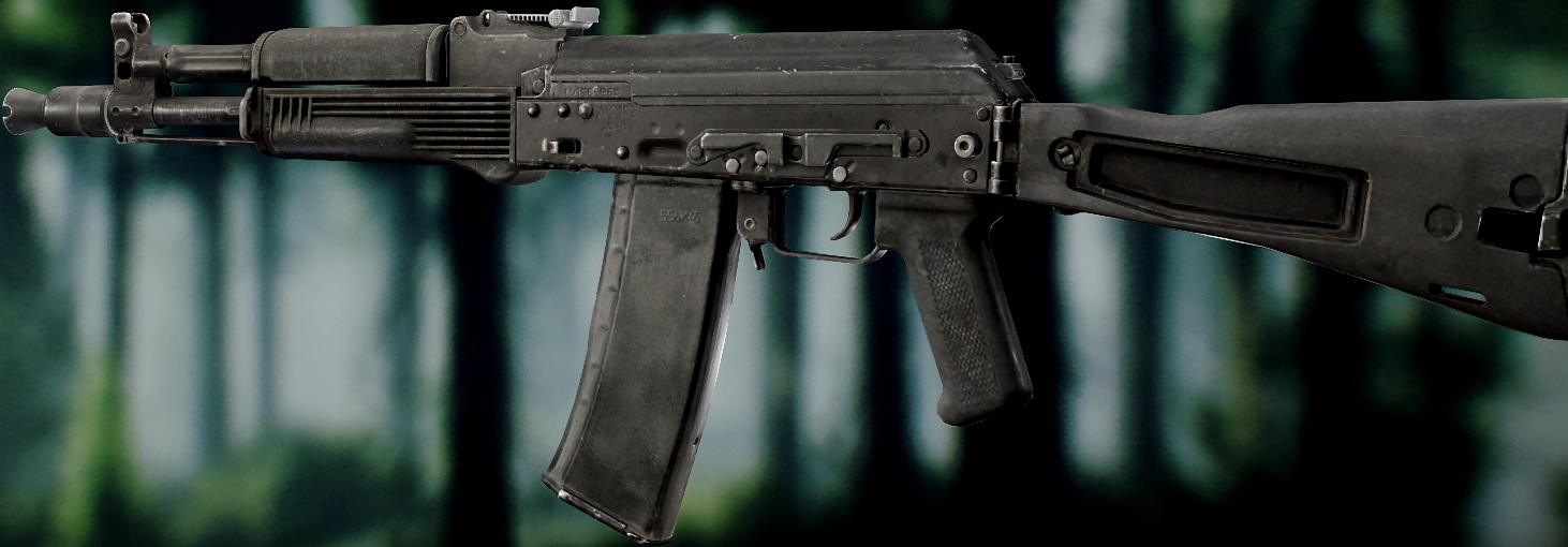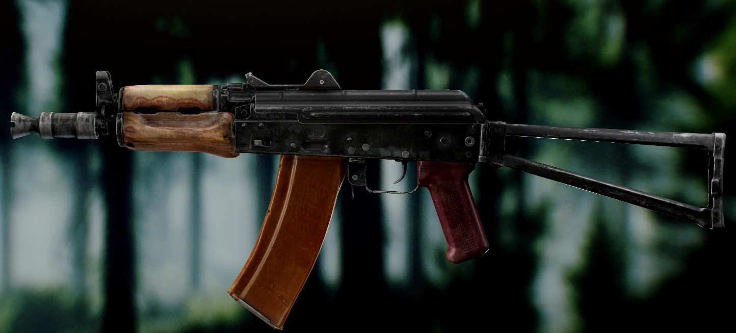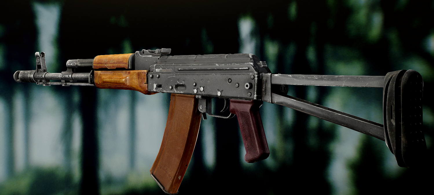 Ось це вже всім відома "ксюха". За основу взяли АКС-74 скоротили ствол, газ.блок, та цівку(з чого виходить що вони не сумісні з іншими АК, по цим запчастинам). Через те що ствол занадто короткий в "ксюхи" наступні мінуси: погані точність, дальність, кучність . З чого виходить що використовувати її можна лише в ближньому бою. Хоч і розроблявся для екіпажів бронетехніки та пілотів, свою основну славу здобув на полях, бо також постачався до МВД. Так після розвалу совку дуже став незамінним в міських кварталах Грозного, в полях Донбасу, та в населених пунктах по всьому сходу України. Через свою масовість та невеликі розміри, для CQB не находилось краше варіант(Та і це мій улюблений калаш, бо я бойовий гном метр 60, і я не можу втримати повно розмірні АК). А по нашій території їх маса. АКСУ використовують всі від Нац.Поліції та Нац.Гвардії до ЗСУ, тому коли будете лутати адміністративні будівлі(після Ядерки) точно їх знайдете.
