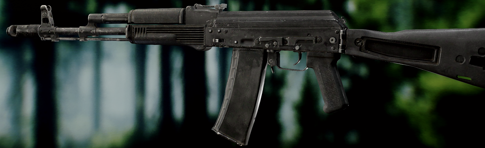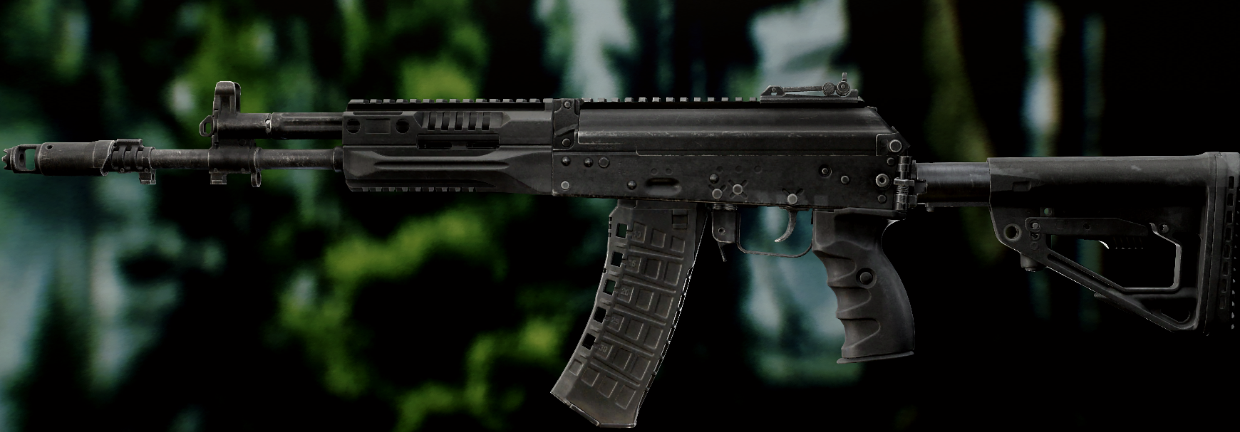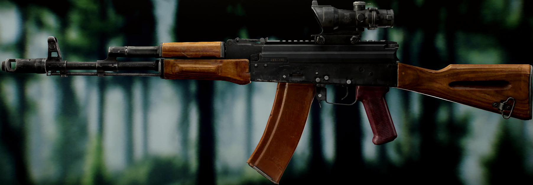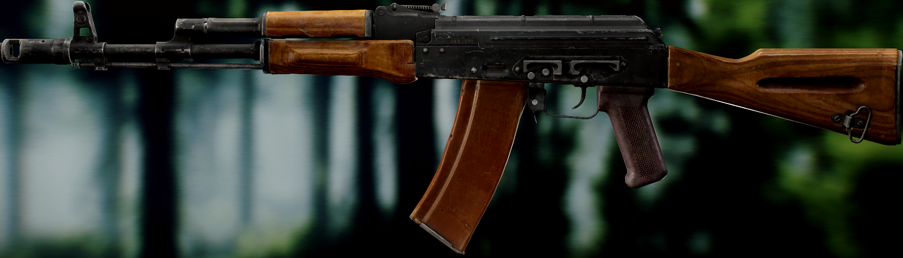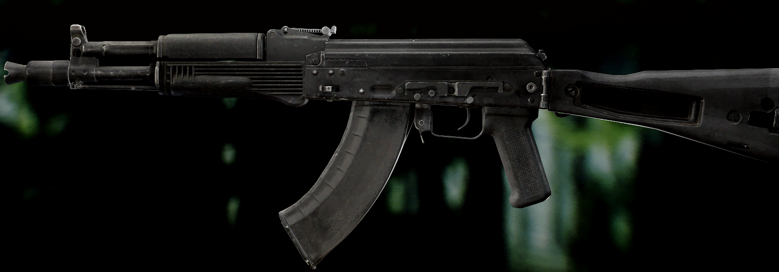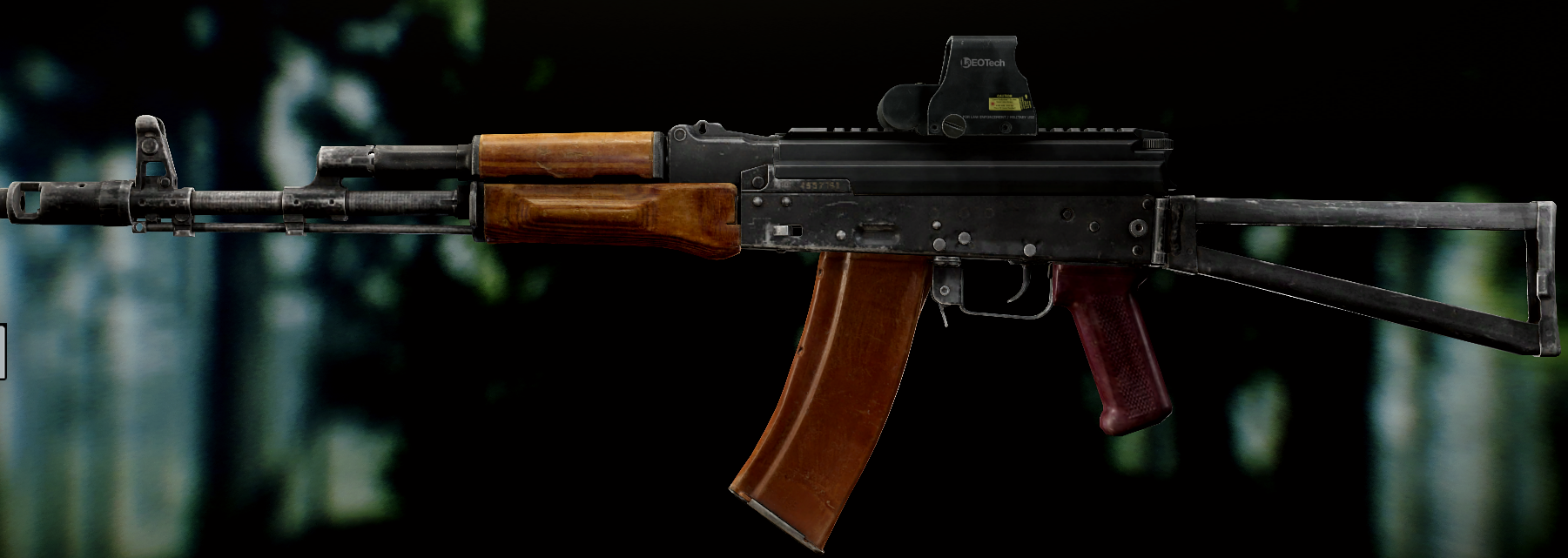 Ось це вже всім відома "ксюха". За основу взяли АКС-74 скоротили ствол, газ.блок, та цівку(з чого виходить що вони не сумісні з іншими АК, по цим запчастинам). Через те що ствол занадто короткий в "ксюхи" наступні мінуси: погані точність, дальність, кучність . З чого виходить що використовувати її можна лише в ближньому бою. Хоч і розроблявся для екіпажів бронетехніки та пілотів, свою основну славу здобув на полях, бо також постачався до МВД. Так після розвалу совку дуже став незамінним в міських кварталах Грозного, в полях Донбасу, та в населених пунктах по всьому сходу України. Через свою масовість та невеликі розміри, для CQB не находилось краше варіант(Та і це мій улюблений калаш, бо я бойовий гном метр 60, і я не можу втримати повно розмірні АК). А по нашій території їх маса. АКСУ використовують всі від Нац.Поліції та Нац.Гвардії до ЗСУ, тому коли будете лутати адміністративні будівлі(після Ядерки) точно їх знайдете.