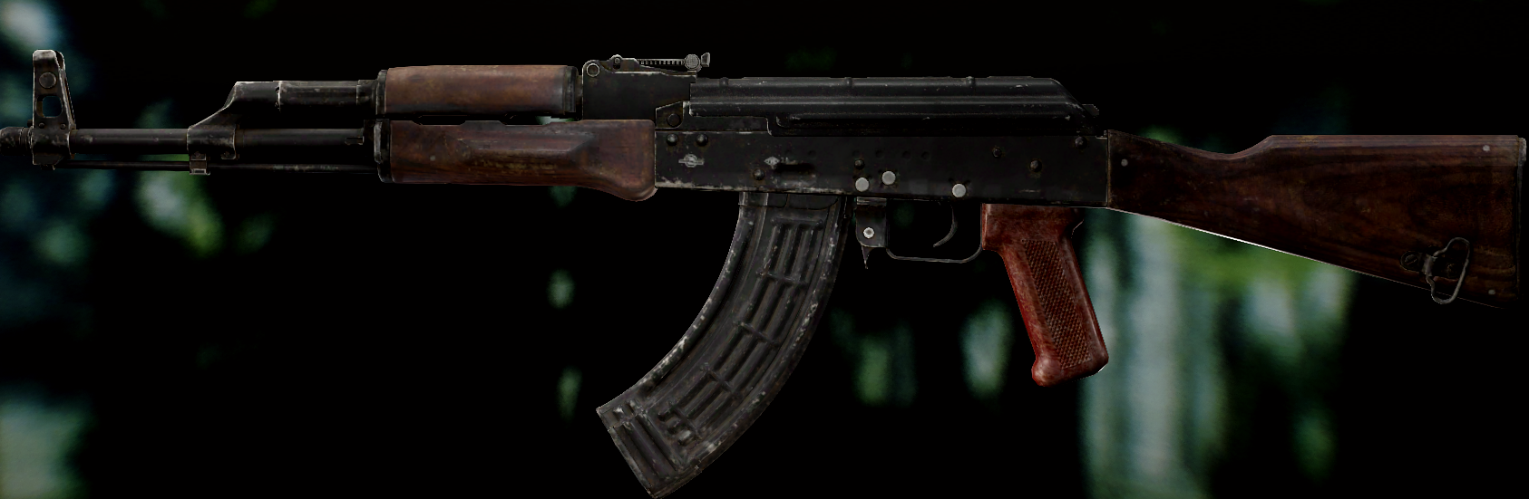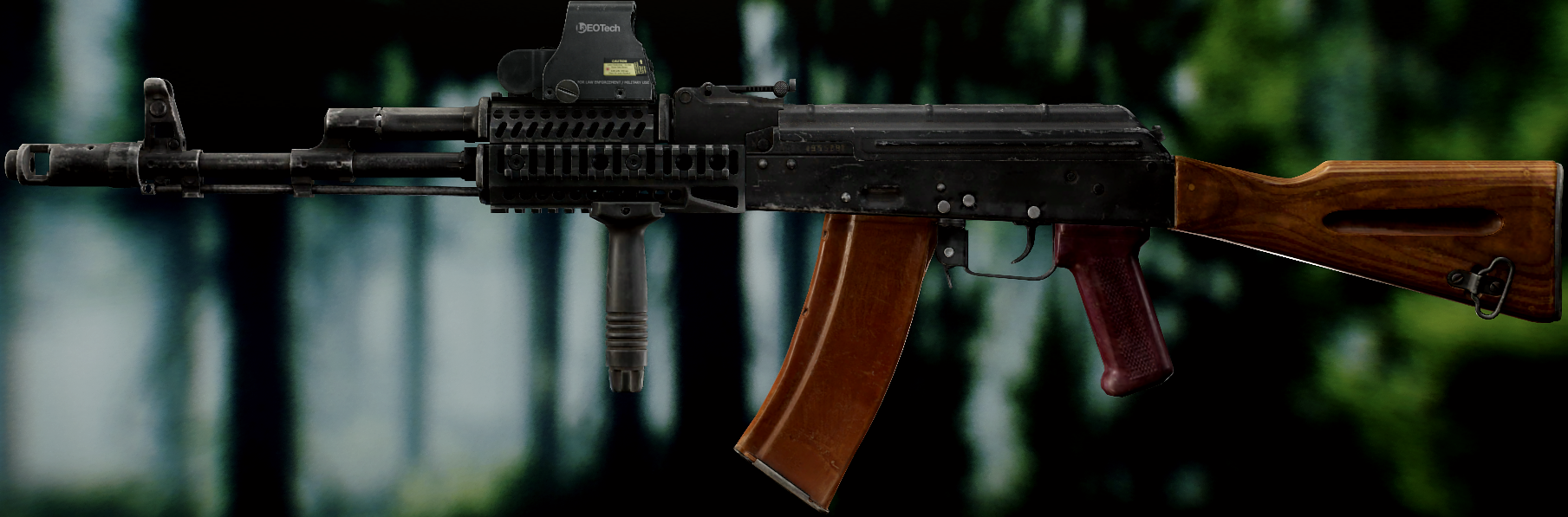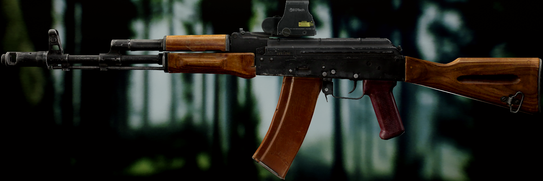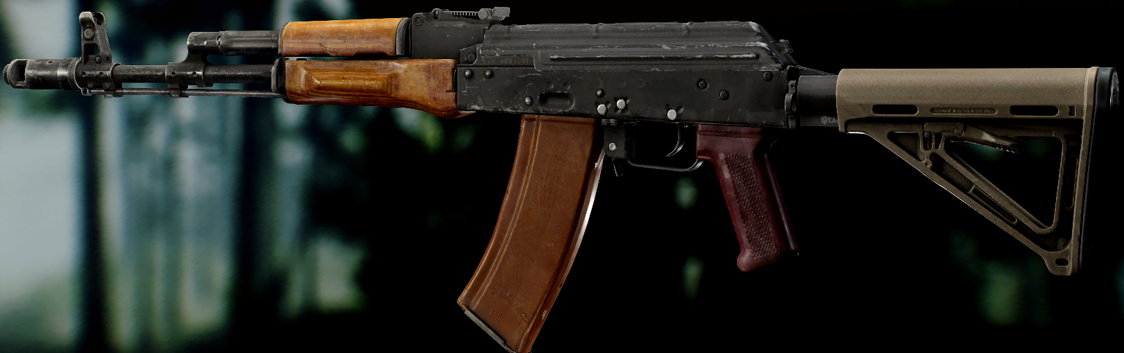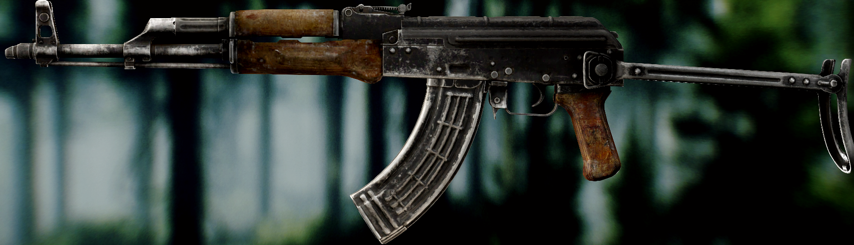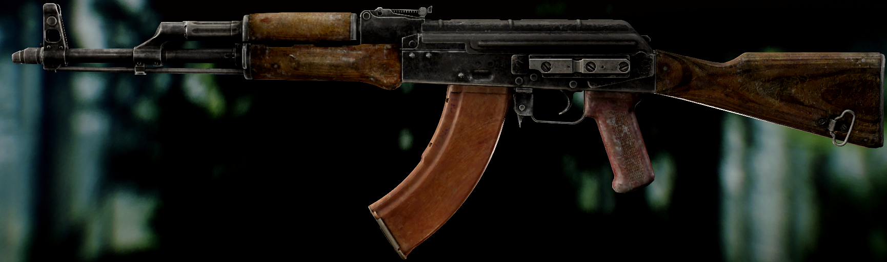 Ось це вже всім відома "ксюха". За основу взяли АКС-74 скоротили ствол, газ.блок, та цівку(з чого виходить що вони не сумісні з іншими АК, по цим запчастинам). Через те що ствол занадто короткий в "ксюхи" наступні мінуси: погані точність, дальність, кучність . З чого виходить що використовувати її можна лише в ближньому бою. Хоч і розроблявся для екіпажів бронетехніки та пілотів, свою основну славу здобув на полях, бо також постачався до МВД. Так після розвалу совку дуже став незамінним в міських кварталах Грозного, в полях Донбасу, та в населених пунктах по всьому сходу України. Через свою масовість та невеликі розміри, для CQB не находилось краше варіант(Та і це мій улюблений калаш, бо я бойовий гном метр 60, і я не можу втримати повно розмірні АК). А по нашій території їх маса. АКСУ використовують всі від Нац.Поліції та Нац.Гвардії до ЗСУ, тому коли будете лутати адміністративні будівлі(після Ядерки) точно їх знайдете.