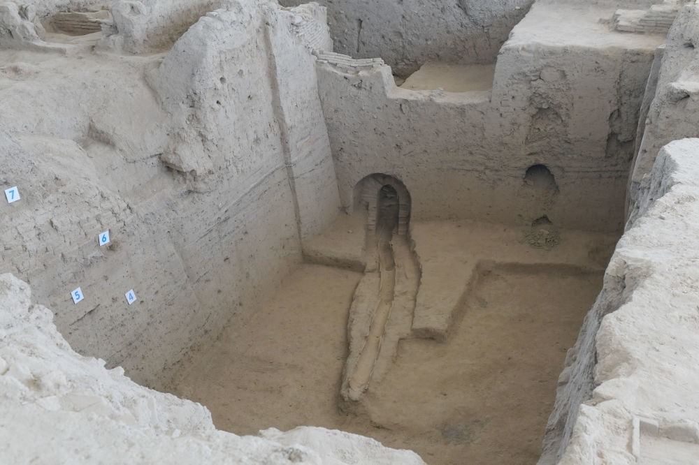 Excavations were conducted in different parts of the settlement. The arch of the pre-Mongol Akhsikent is located in the South – West corner of Shahristan. In the plan, it is perceived as a triangle with an acute angle directed to the East. More than half of the area of the arch was washed away by the Syr Darya during periods of flooding. As a result of excavations, two layers were recorded in the arch. In the upper layer, ceramics of the 15th – 16th centuries was found, and in the lower layer, seven residential and economic premises belonging to the 11th - early 13th centuries were excavated. Among the finds are fragments of ceramic and glass products, coins of the 10th-12th centuries. Excavations of residential quarters indicate a high level of medieval urban planning and the improvement of the structures of Akhsikent, which in this respect was not inferior to the central cities of Maveranahr - Bukhara and Samarkand. Part of the cities and large settlements were supplied with clean spring water, provided by clay pipes-kubur. Castles and palaces had a centralized heat supply. The aristocracy and rural classes had house baths in their estates. Local inpatient hospitals were successfully operated in the city. A public cemeteries were arranged only outside the walls of Rabad-the city suburb.