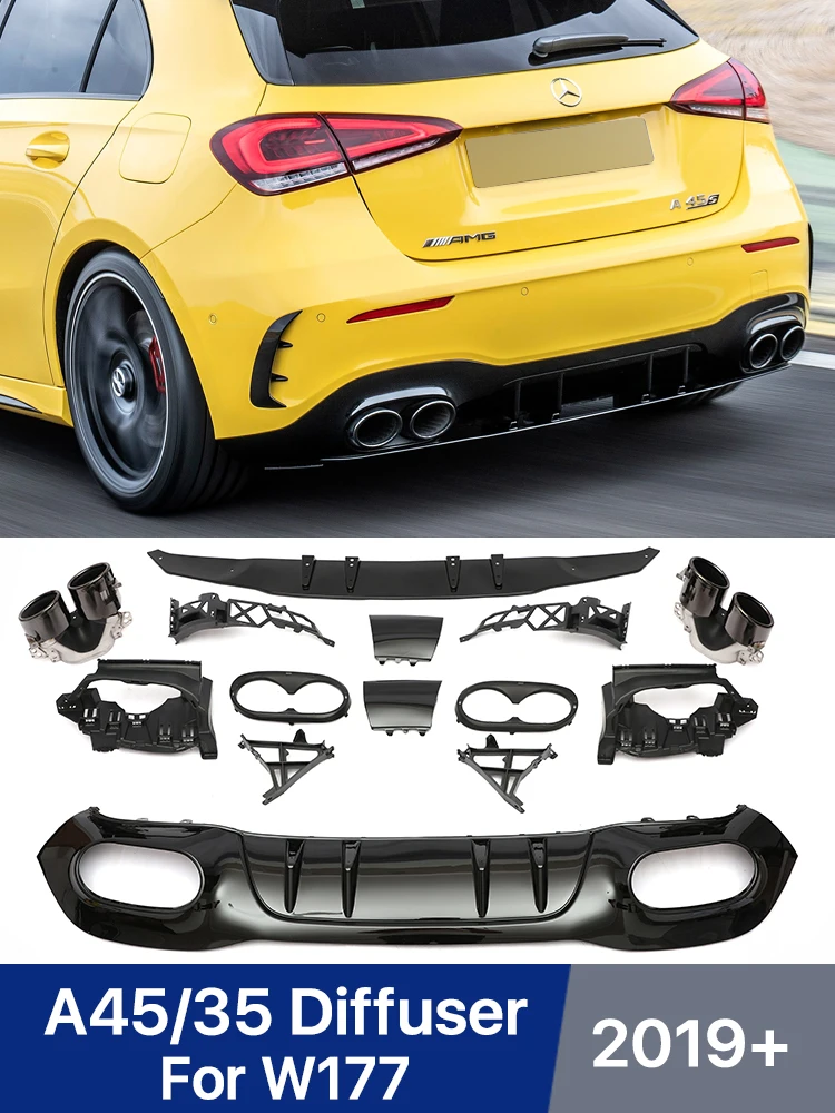 cMosPPVbfUHere you can buy AMG Rear Diffuser A45 A35 Style For Mecerdes For Benz A Class W177 2019 2020 2021 Rear Bumper Splitter With Exhaust Pipe Tips with free delivery to your post office.