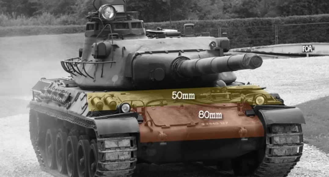 Башта: лоб: 80мм / 73°, маска гармати: 150мм, борт: 35мм / 40°, корма: 30мм / 45°, дах: 20мм