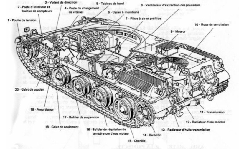 Інші три члени екіпажу сидять у башті, командир праворуч, навідник ліворуч і заряджаючий, який також керує радіостанцією, ліворуч.