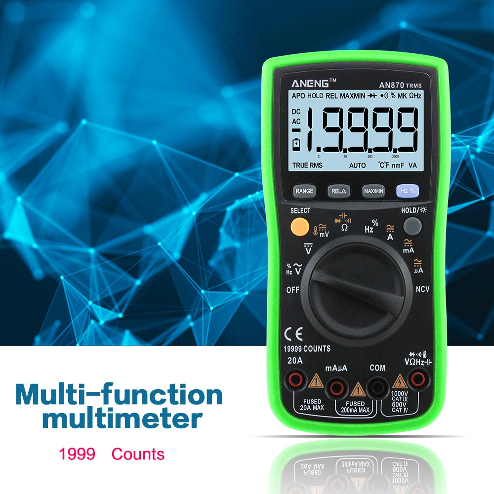 RLRSRiBXHere you can buy AN870 Auto Digital Multimeter 19999 counts True-RMS NCV Ohmmeter AC/DC Voltage Ammeter Transistor Power Meter Temperature Tester with free delivery to your post office.