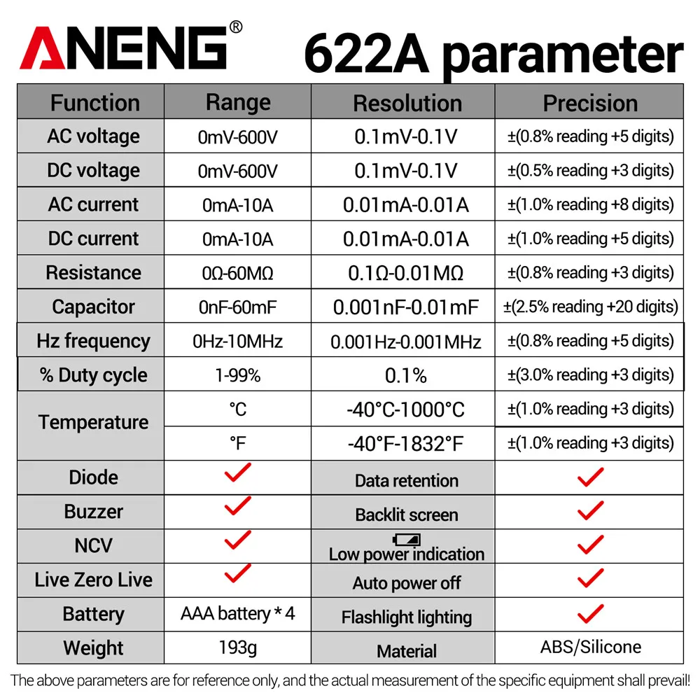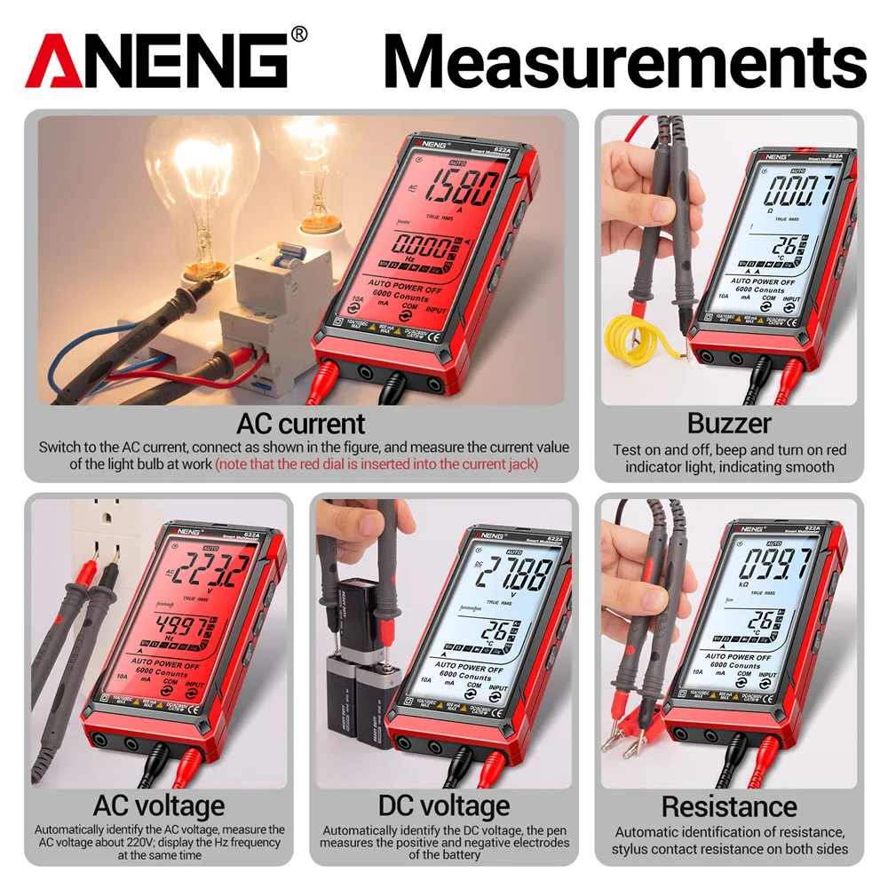 OpHLnhuEvЗдесь вы сможете купить ANENG 622A 6000 Counts Infrared Laser Smart Multimeter AC/DC Voltage Meter Current Meter NCV Detector Diode Hz Temp Capacitor с бесплатной доставкой до вашего почтового отделения.