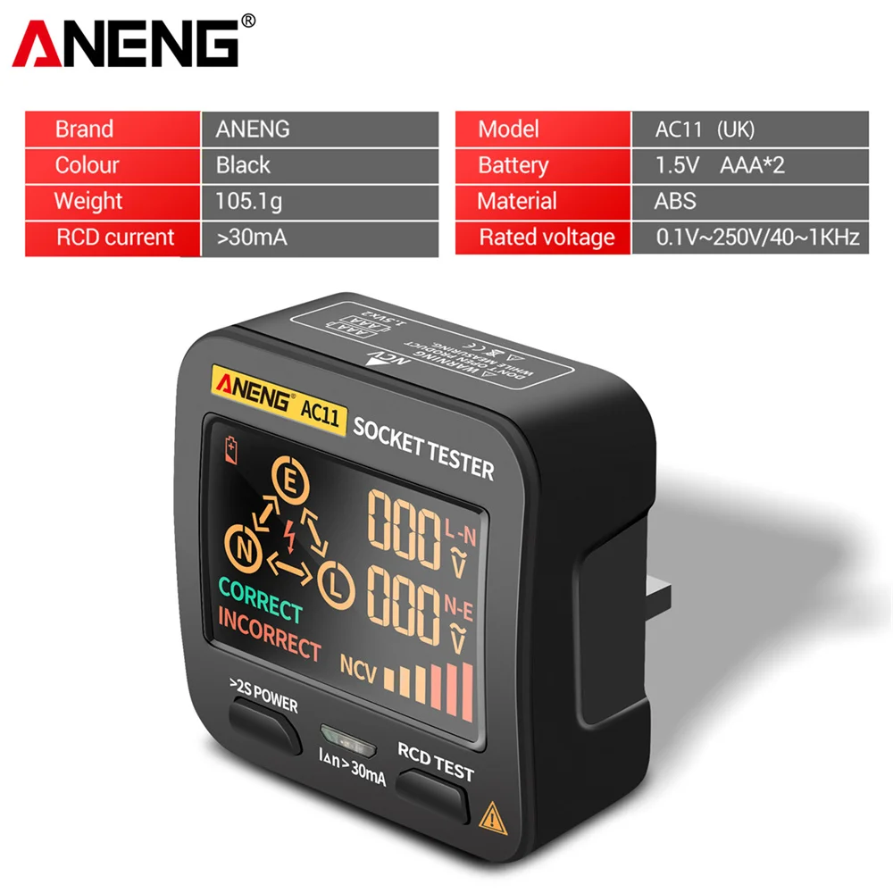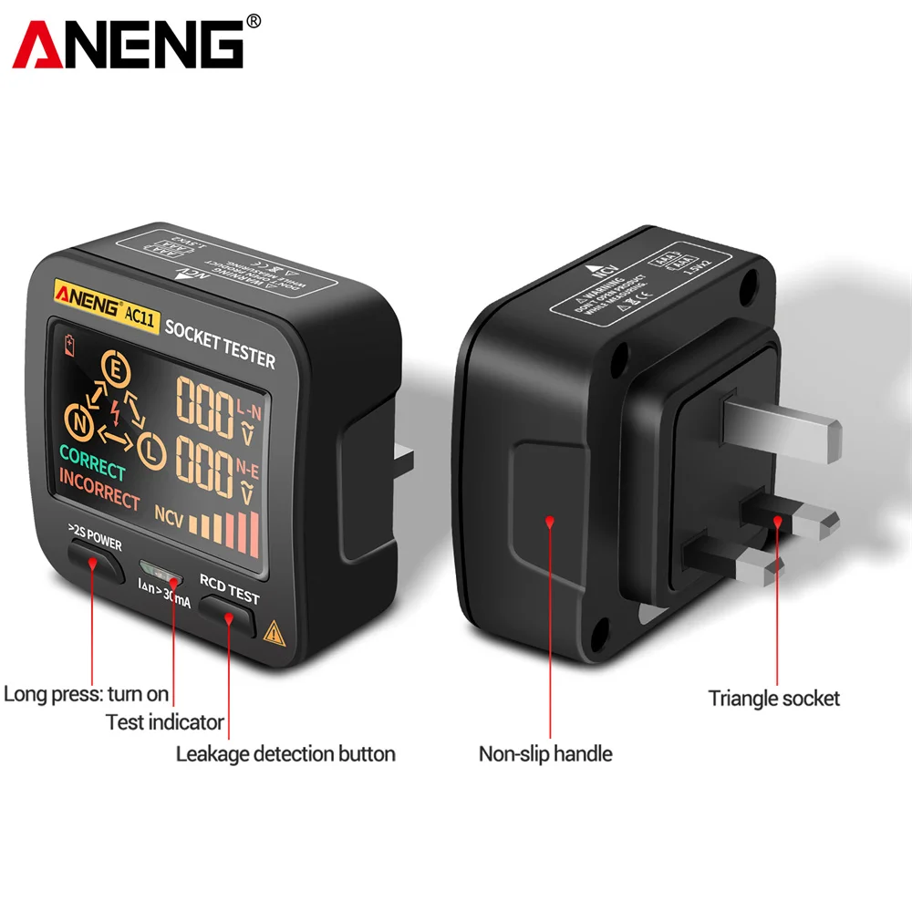 ANENG AC11 Voltage Test Socket Detector US/UK/EU/AU Plug Ground Zero Line Phase Check Rcd NCV Test Digital Smart Socket Tester - Купить с бесплатной доставкой
