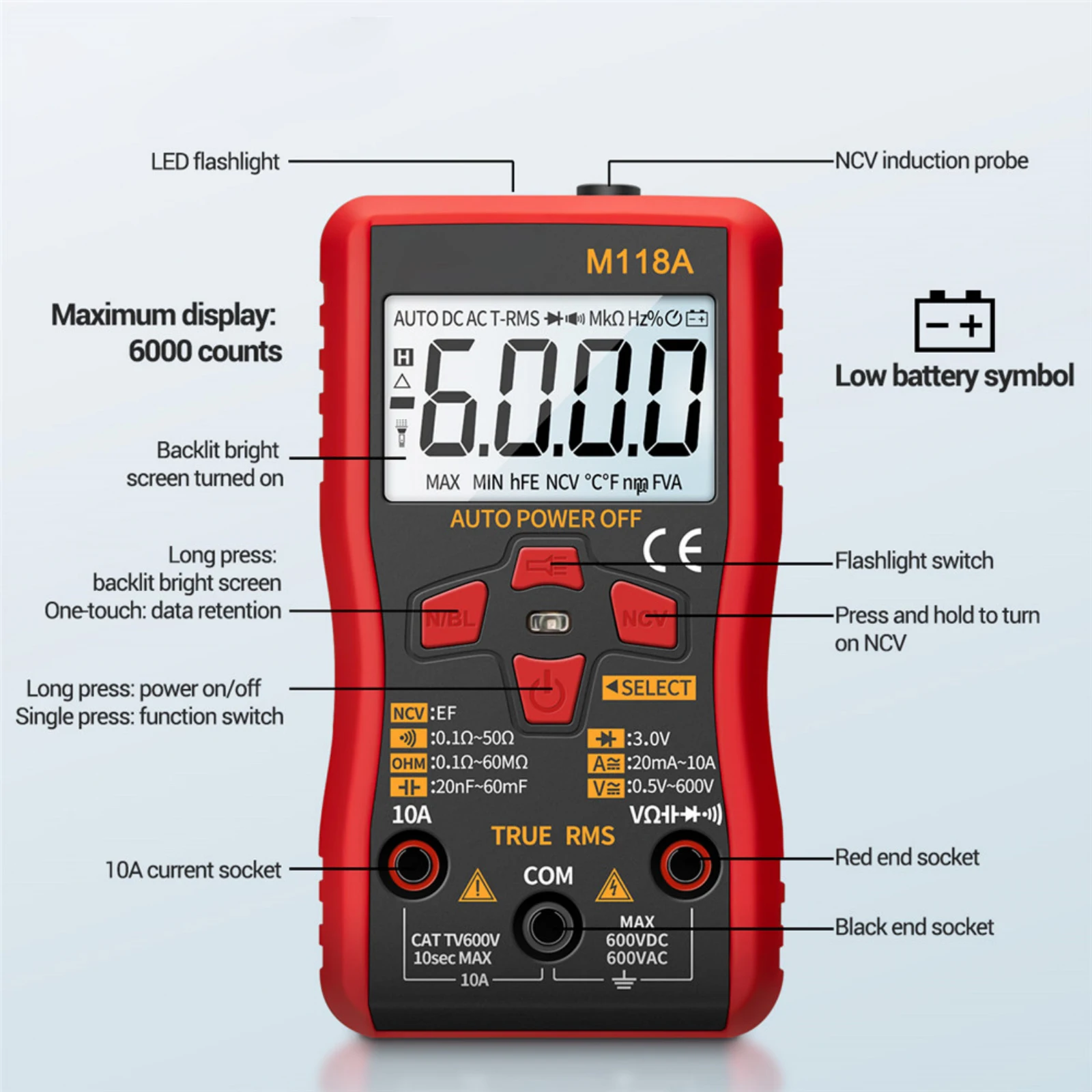 skQhViLFLWHere you can buy ANENG M118A 6000 Counts Mini Digital Multimeter Tester Auto Mmultimetro True Rms Tranistor Meter with NCV Data Hold Flashlight with free delivery to your post office.