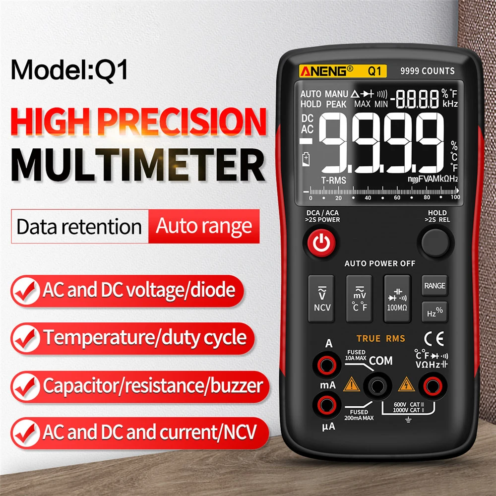 ANENG Q1 Digital Multimeter Professional Tester 9999 Analog True RMS Multimetro DIY Transistor Capacitor NCV Testers Lcr Meter - Купить с бесплатной доставкой