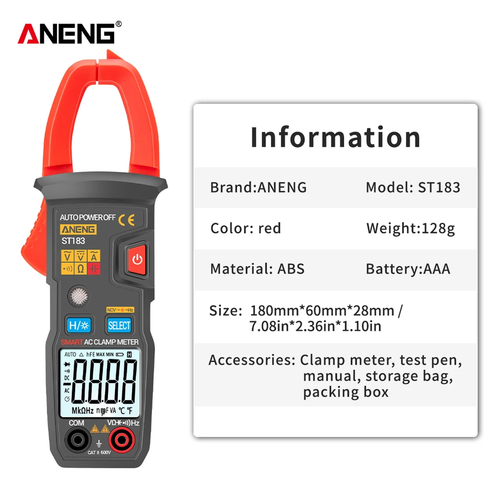 xePALTOMSbHere you can buy ANENG ST183 Digital Clamp Meter AC Current 6000 Counts True RMS Multimeter DC/AC Voltage Tester Hz Capacitance NCV Ohm Tests with free delivery to your post office.