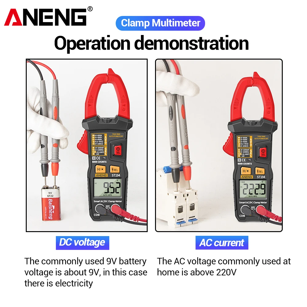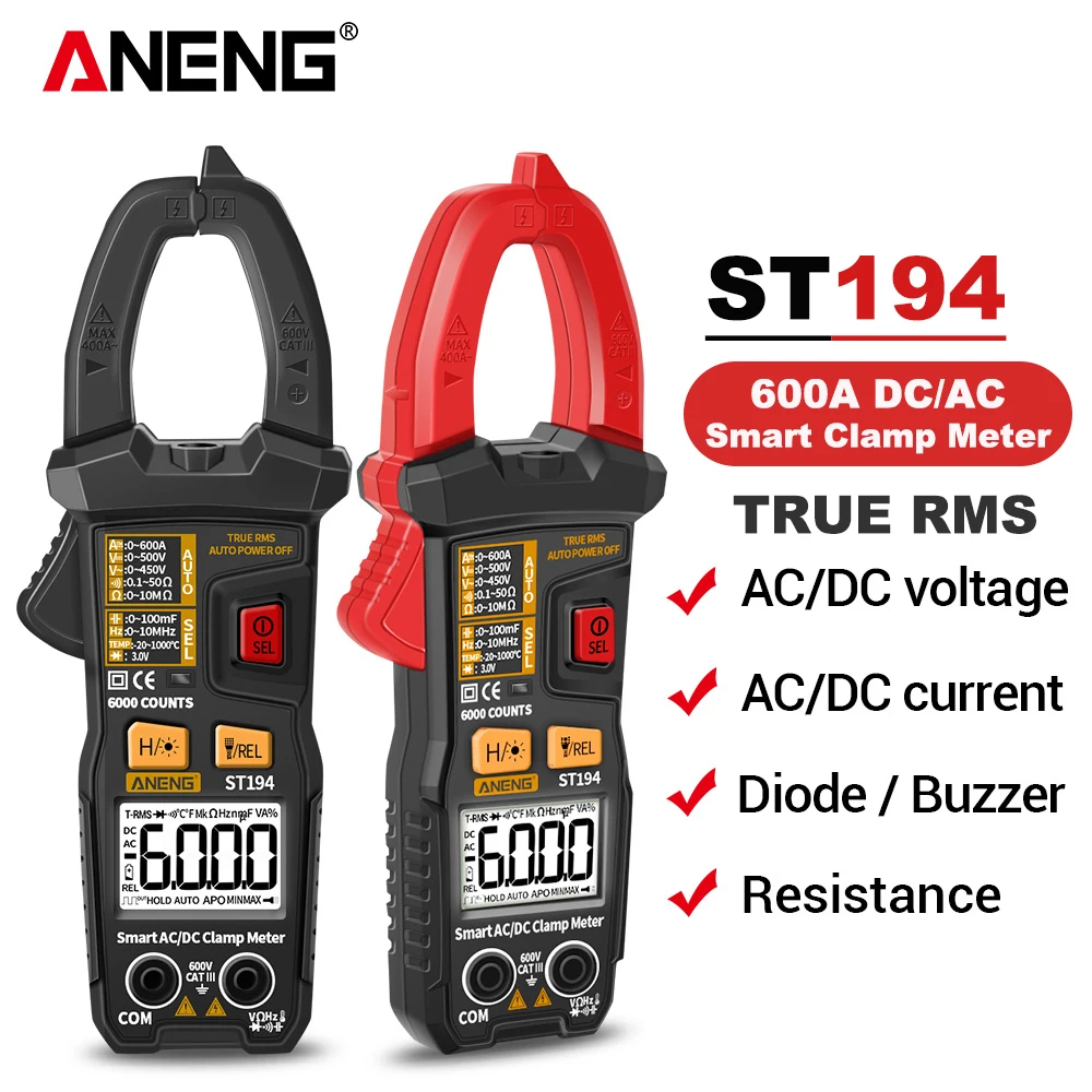 "ANENG ST194 Digital Clamp Meter Multimeter DC/AC Current Tester 600V Voltage True RMS Amp Meters 6000 Count Capacitor multimetro" * Buy Now With Free Shipping Just For $13