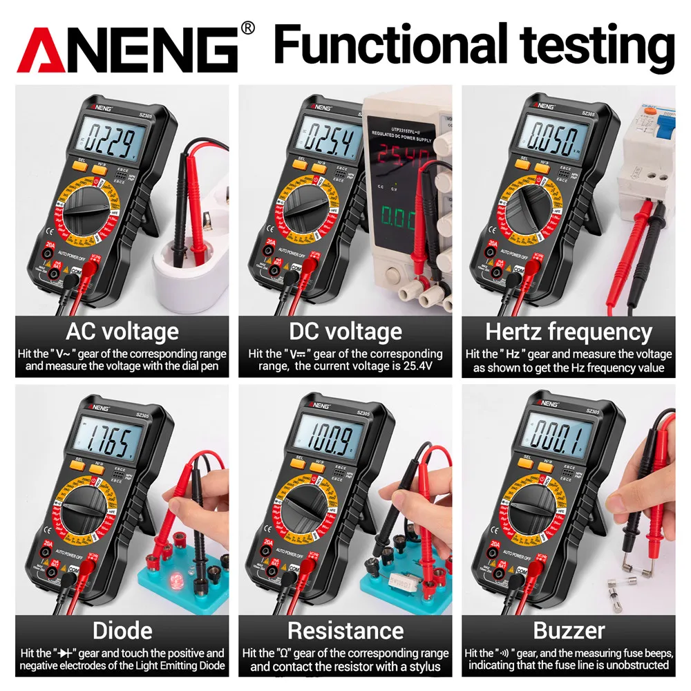 FZjidyaycЗдесь вы сможете купить ANENG SZ305 Multimeter Capacitor Testers Professional 1999 Counts Smart Voltmeter AC/DC Votage Current Resistance Ohm Test Tools с бесплатной доставкой до вашего почтового отделения.