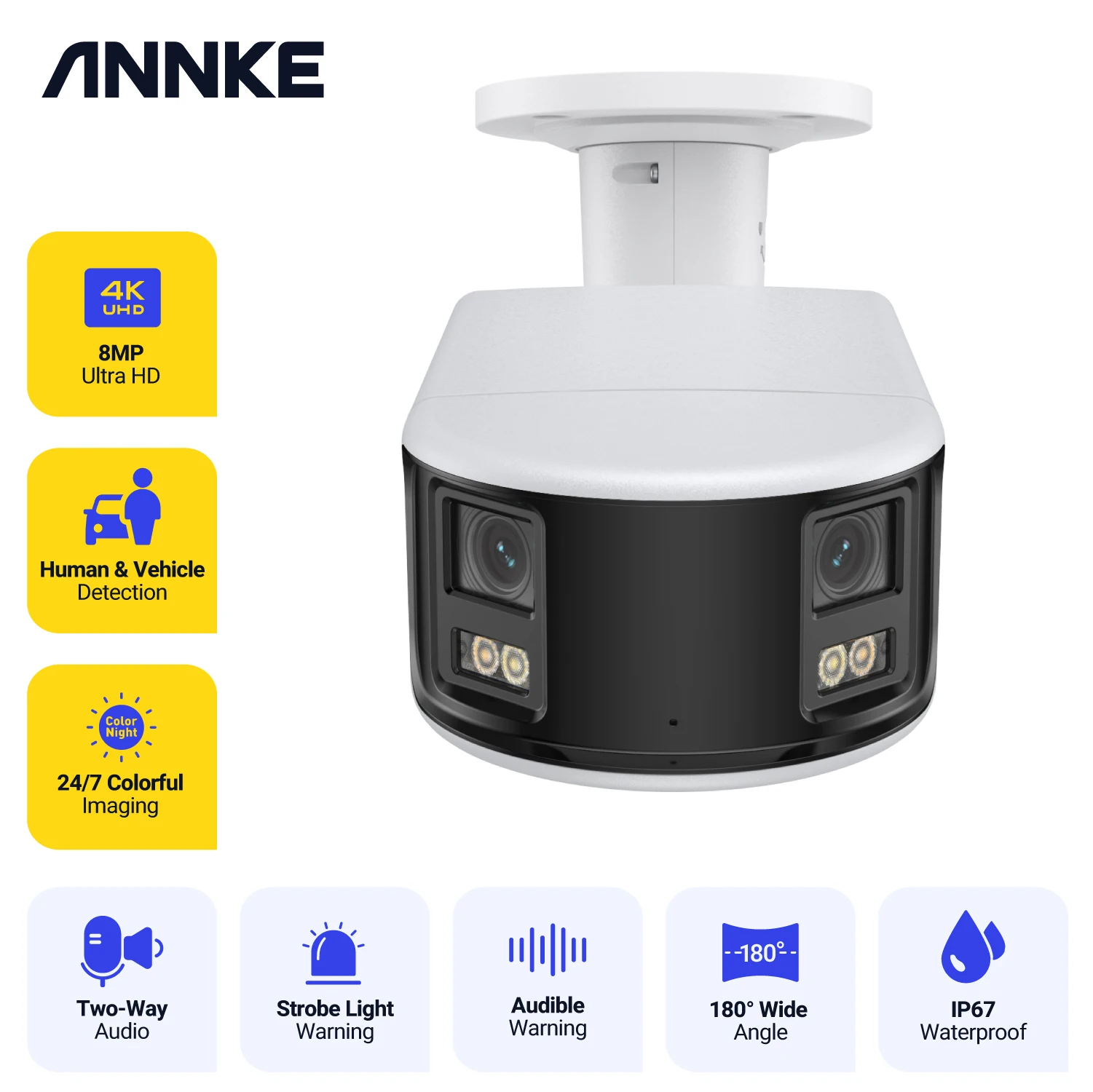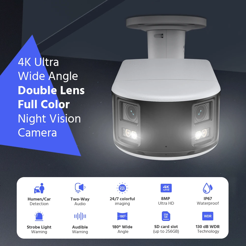 ANNKE 4K Camera Security Panoramic Wifi Dual Lens Human Detection Auto Tracking 8MP IP Camera Dual Lens Poe 180° Wide View Angle - Купить с бесплатной доставкой
