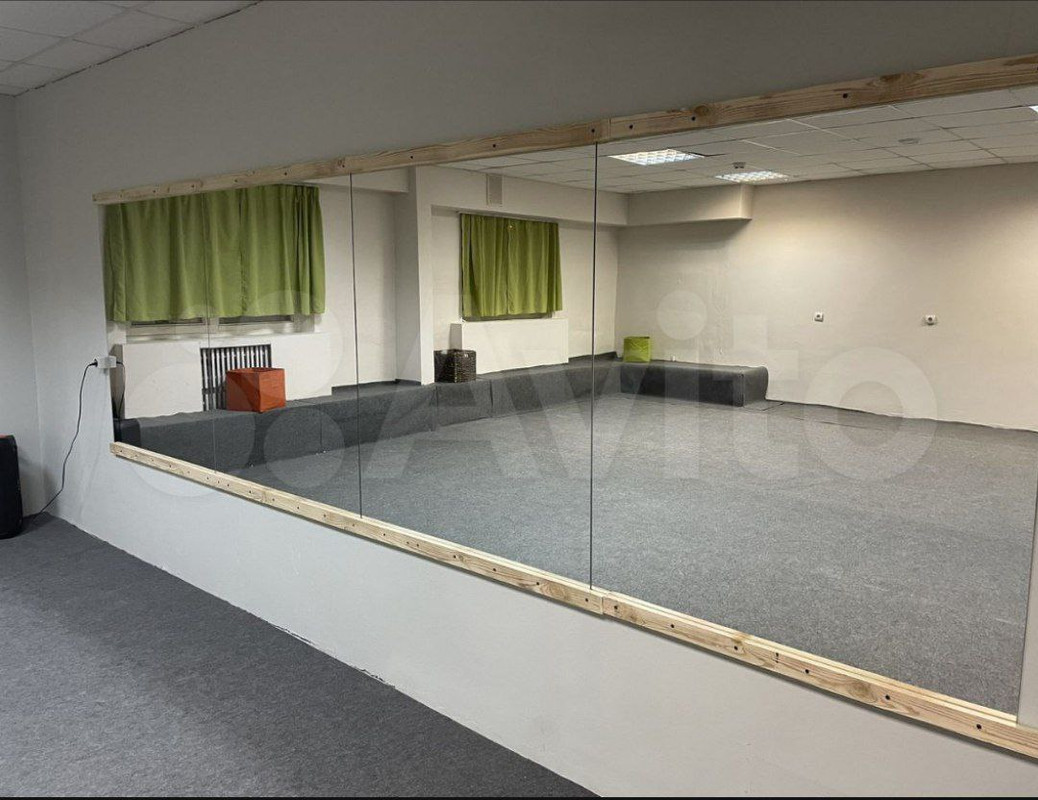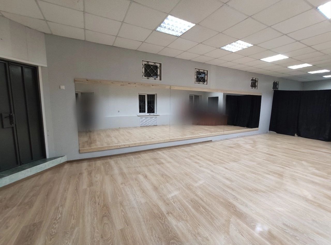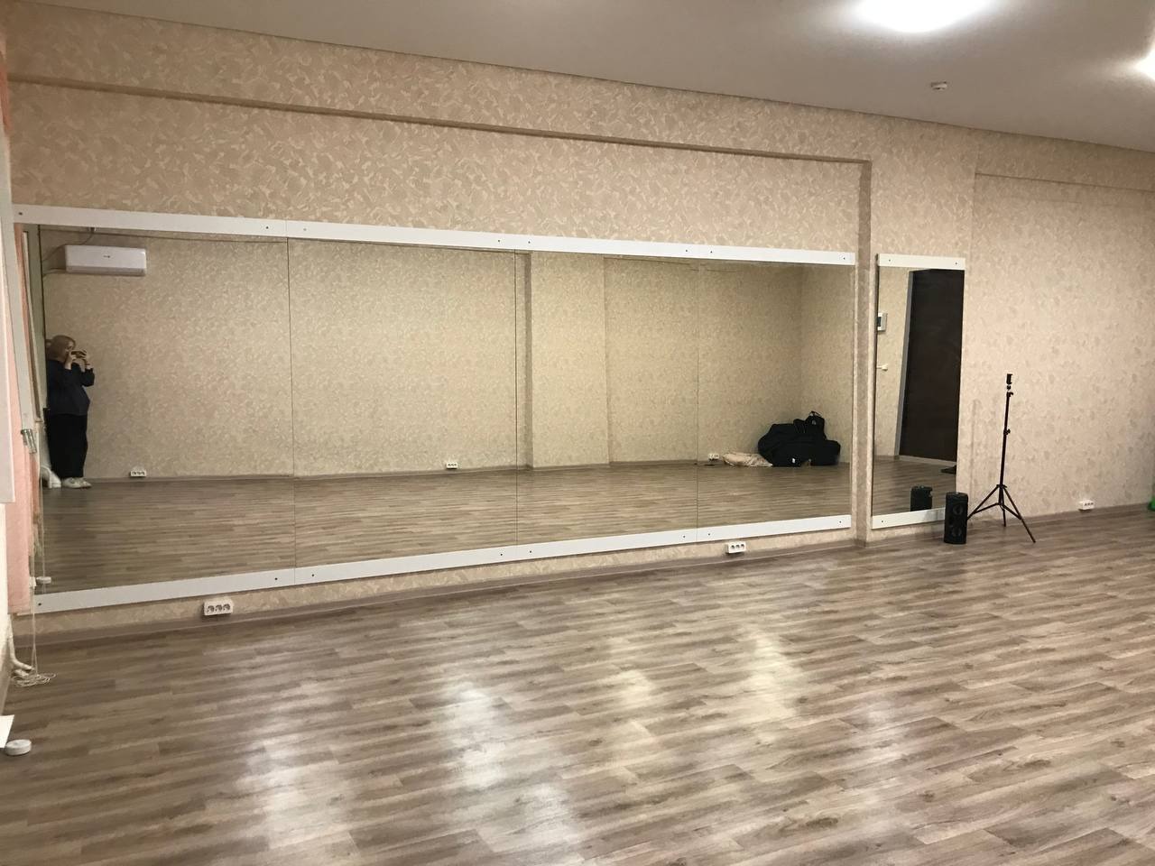 3. Высокие и большие зеркала- 6,5 метров в длину, музыкальное оборудование - bluеtооth колонка, световое оборудование - rgb ленты, штатив, санузел, кулер с водой, бесплатная парковка перед зданием