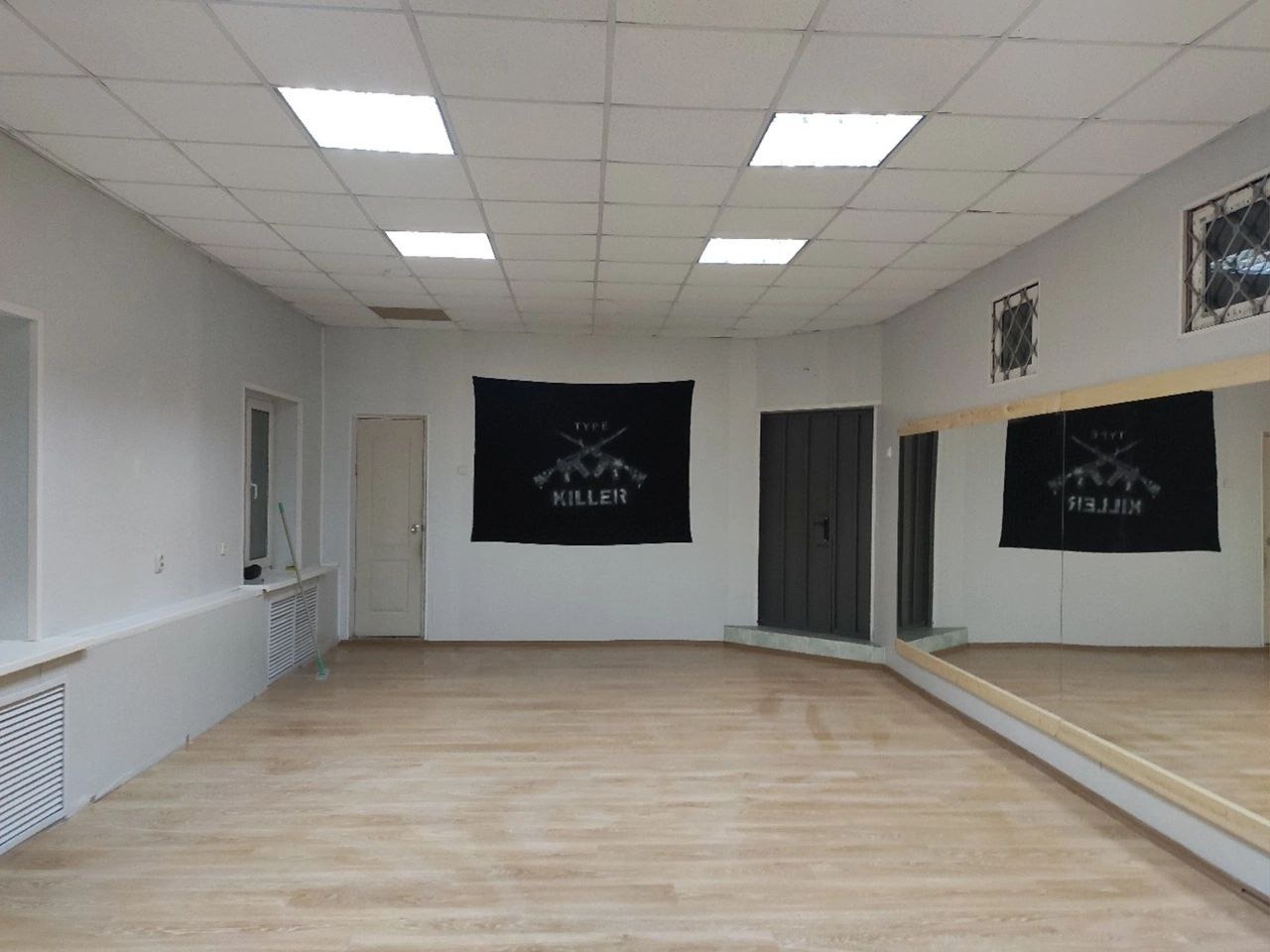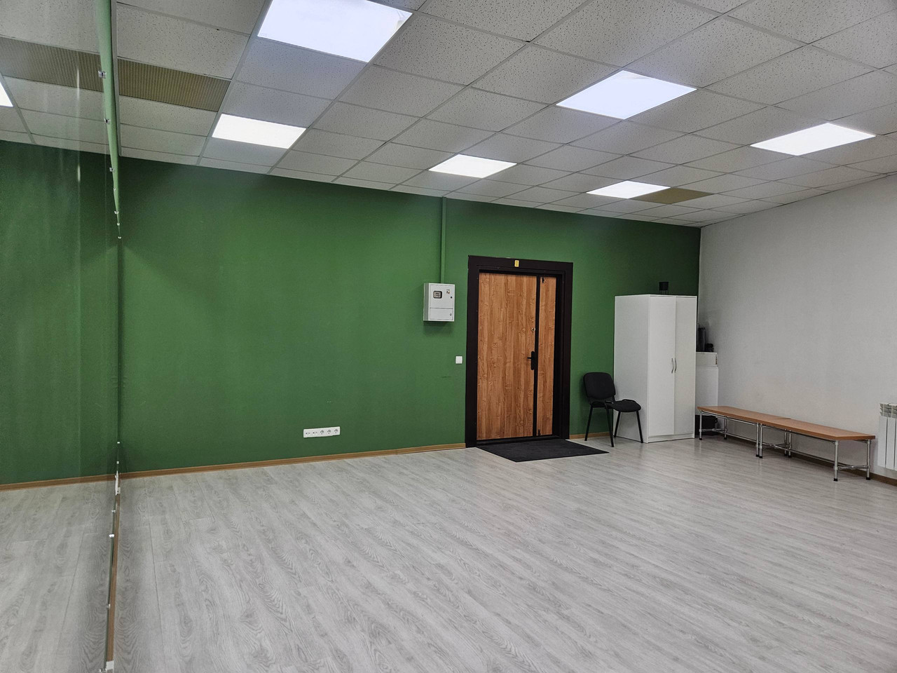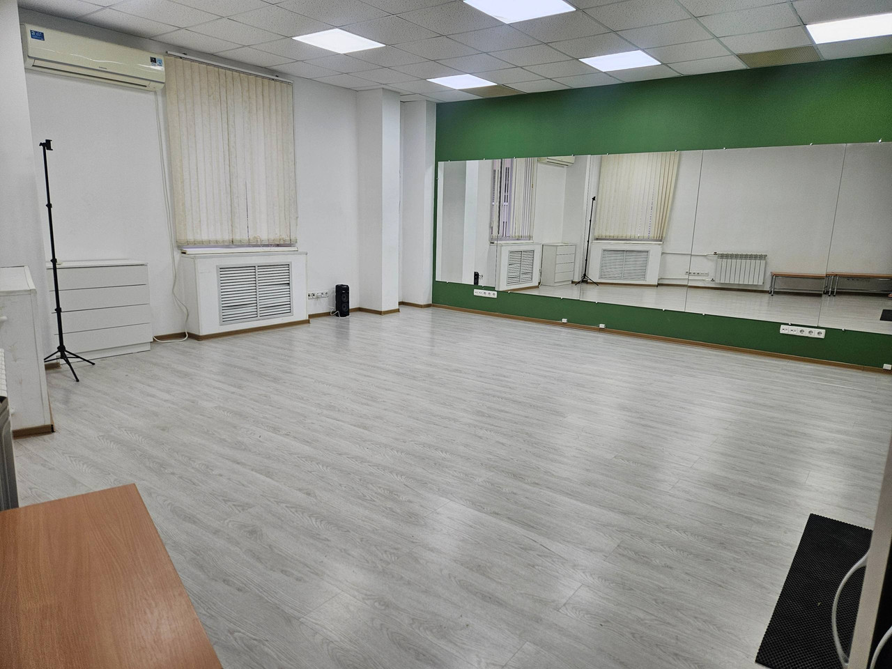3. Высокие и большие зеркала- 6,5 метров в длину, музыкальное оборудование - bluеtооth колонка, световое оборудование - rgb ленты, штатив, санузел, кулер с водой, бесплатная парковка перед зданием