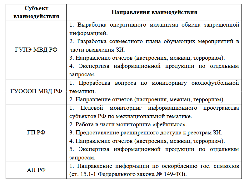 На протяжении нескольких лет ведомство тесно сотрудничает с силовыми структурами РФ и администрацией Кремля. В его задачи входит оперативный мониторинг статей, постов и комментариев в русскоязычном Интернете, а также составление доносов и требований удалить неугодные материалы.