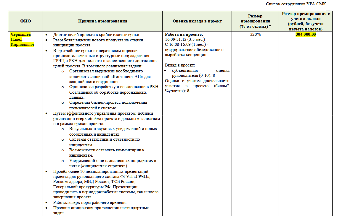 Система быстрого обмена сообщениями в первой версии заработала в том же 2019 году. За что руководитель проекта Павел Чернышев получил солидную премию в 304 тысячи рублей.