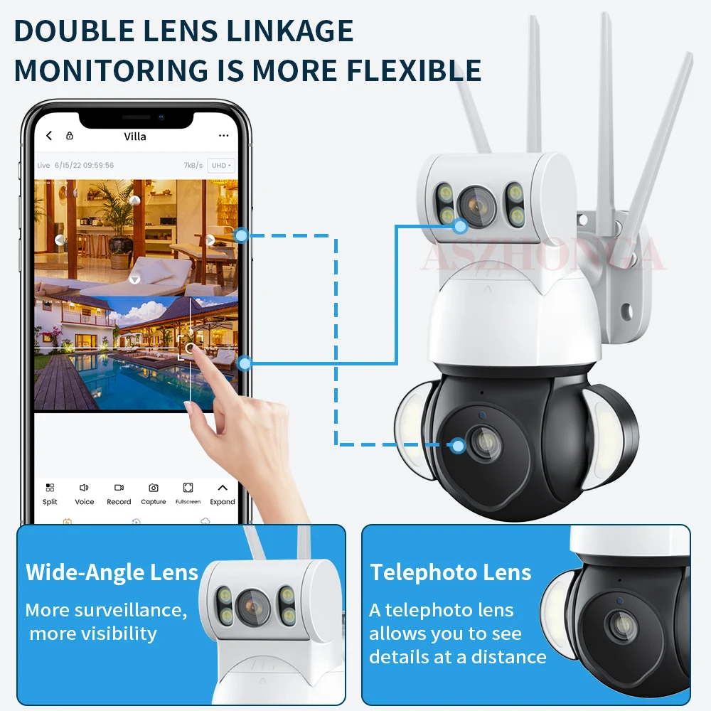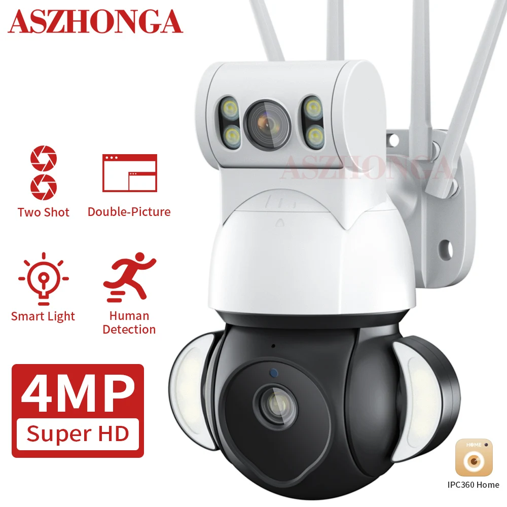 "ASZHONGA 4MP Dual Lens Camera 2K 10X IP Wireless Wifi CCTV Cam Dual Lens Screen Display Flash Lights Mini Network Security" * Buy Now With Free Shipping Just For $99
