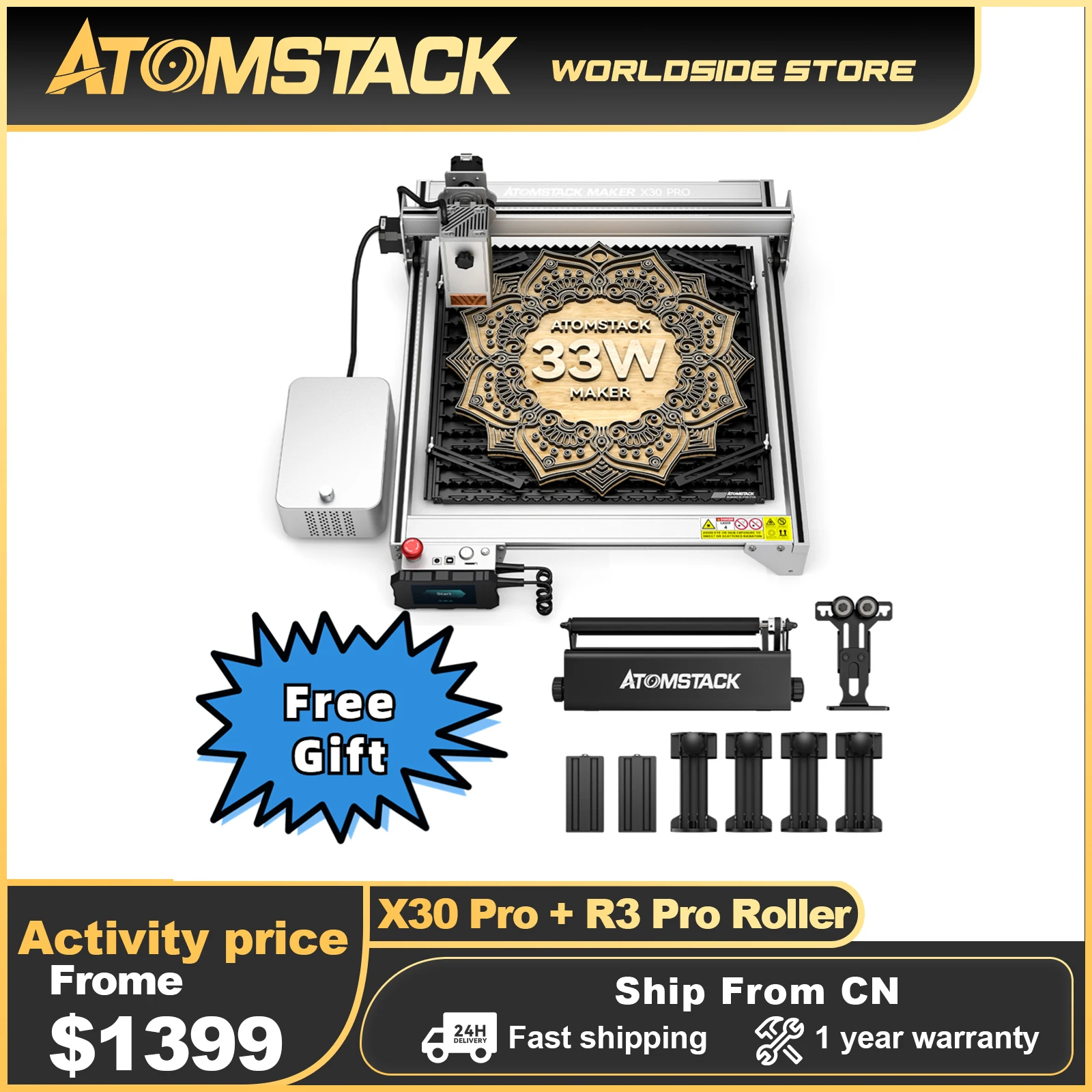 «ATOMSTACK X30Pro with R3 Pro Roller 33W Laser Engraving Cutting Machine DIY CNC Laser Engraver Metal Engraver APP Contro» по лучшей цене на рынке! Всего за 119$ (11305рублей)