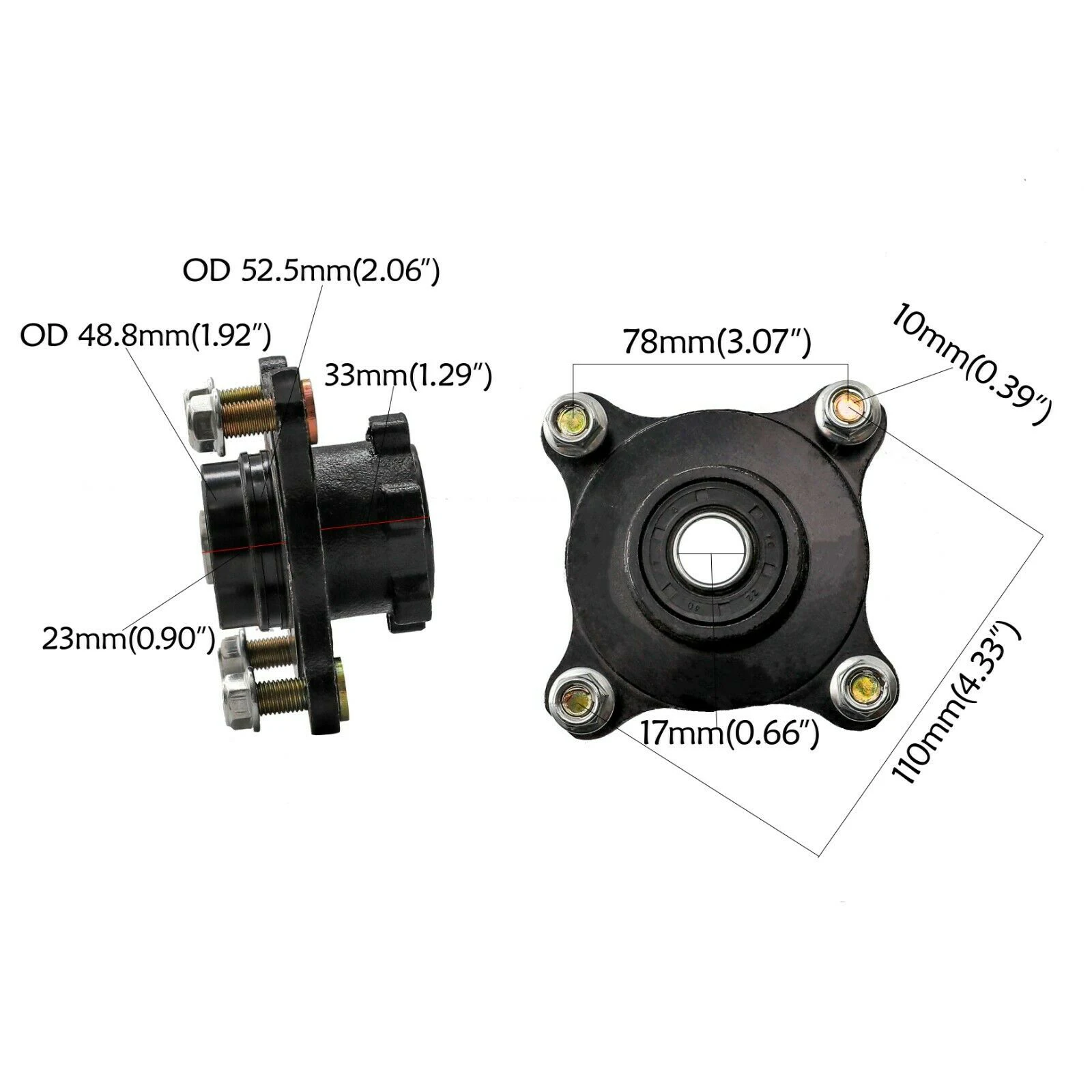 "ATV Front Steering Knuckle Spindle 4 Stud Rim Wheel Hub Brake Disc Rotor Caliper for Go Kart Quad Bike" * Buy Now Just For 75$
