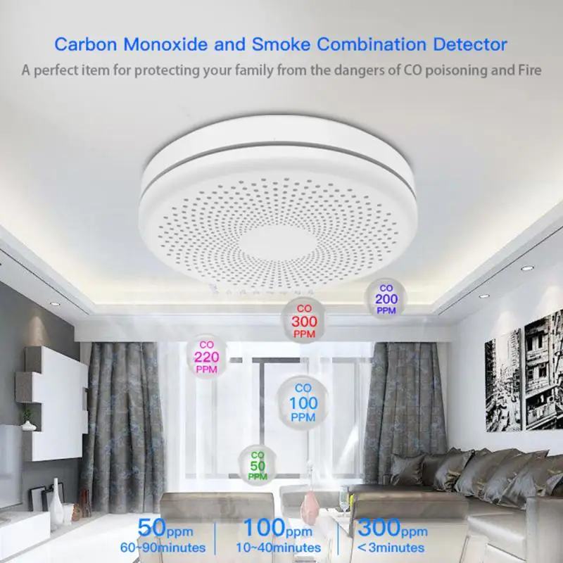 AUBESS Tuya WiFi Smart Smoke Sensor Carbon Monoxide Sensor Composite Home Fire Detector Smoke Alarm 2 In 1 Version Home Security - Купить с бесплатной доставкой