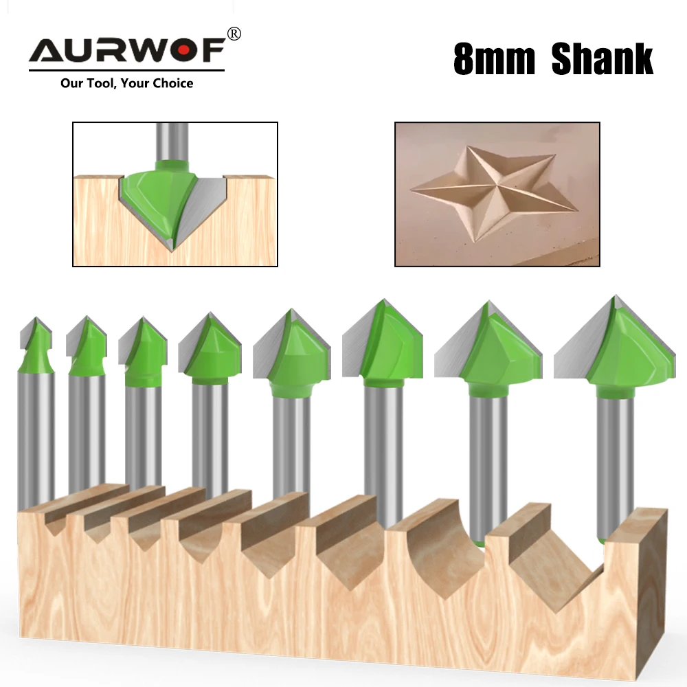 AURWOF 1pc 8mm Shank 90 Degree V Type Slotting Cutter Bit CNC Engraving Solid Router Bit Carbide Milling Cutter C0802406GN - Купить с бесплатной доставкой