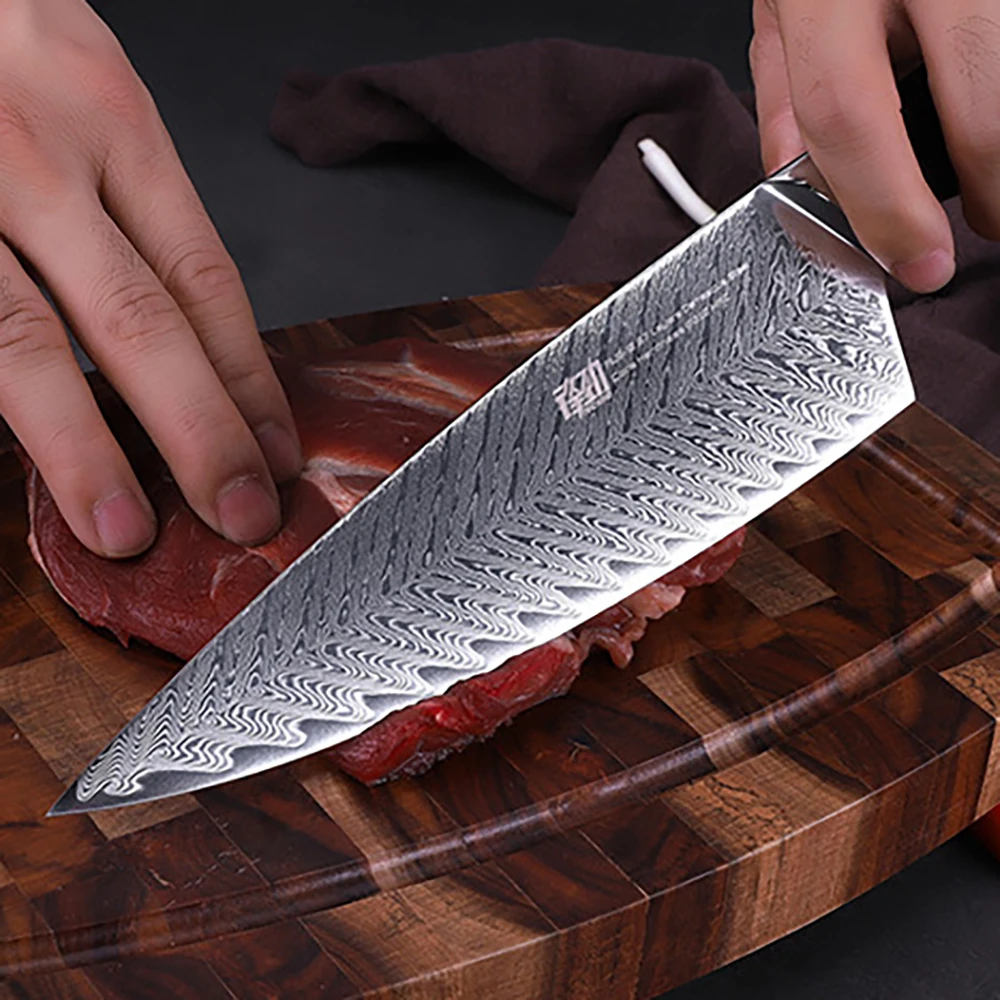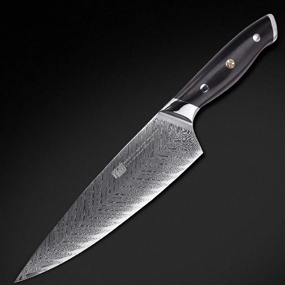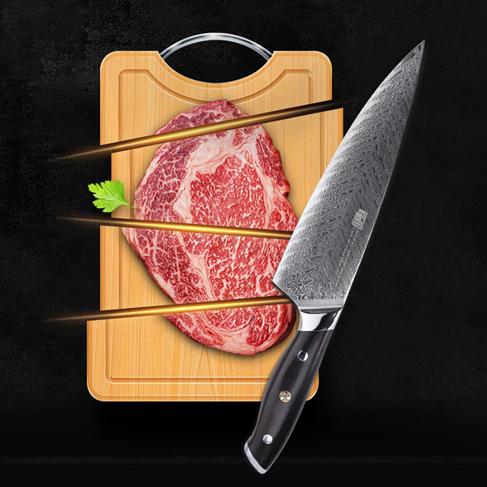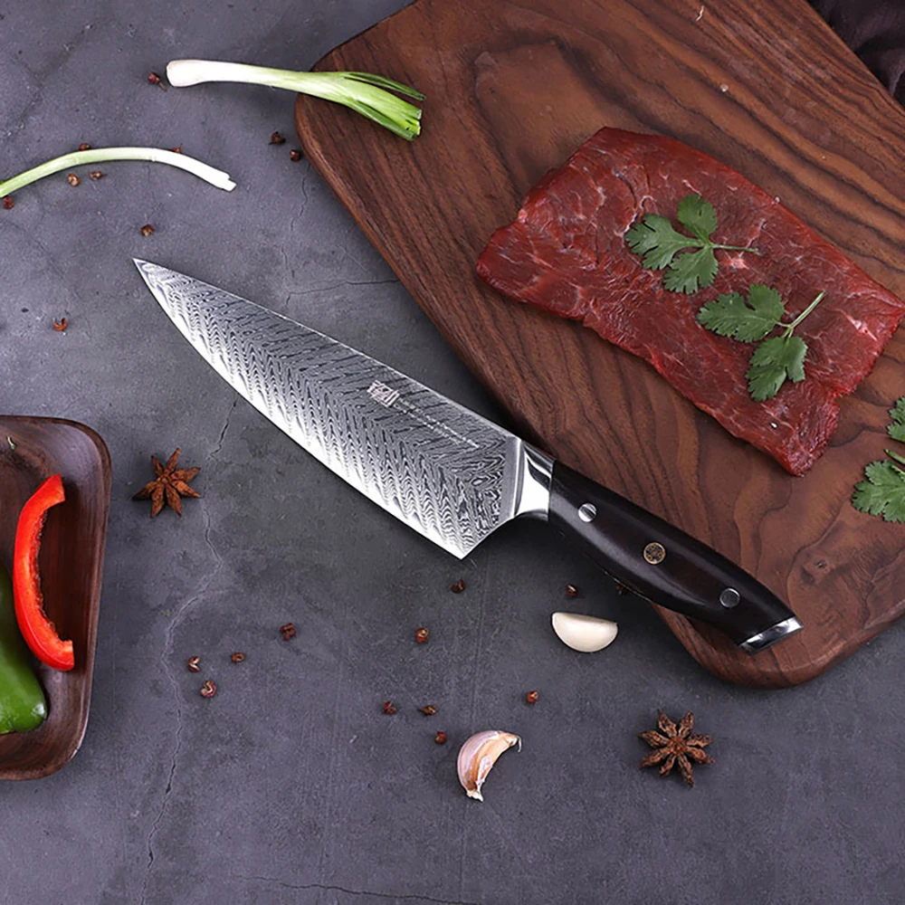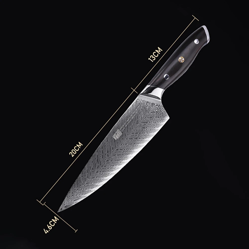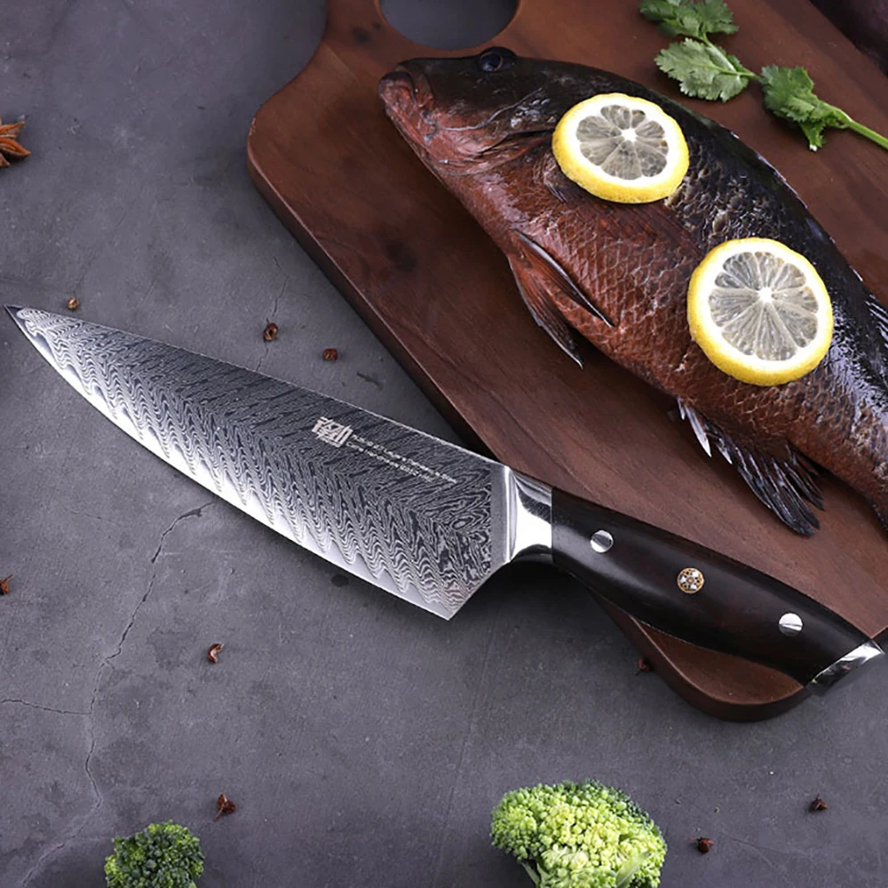 "AUS10 Damascus Japanese Chef Knife Fishbone Pattern Blade Gyuto Knives Ebony Handle Mosaic Rivet 8Inch Kitchen Cleaver" * Buy Now With Free Shipping Just For $62