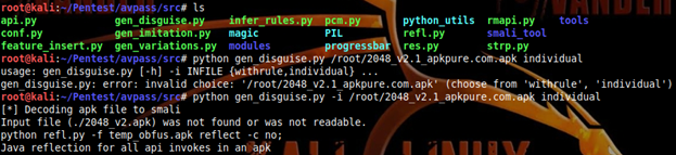 · Разработчики добавляют новые функции (Java reflection, complicate string encryptor), для повышения результативности. К сожалению, новые модули несовместимы с некоторыми предыдущими модулями. При тестах были выявлены некоторые ошибки. Поскольку Java reflection скрывает все имена методов, модуль pcm (сменщик пакетов / класса / метода) может инициировать ошибку при запуске obfuscation APK. Чтобы решить эту проблему, мы предоставим модуль pc (package / class) только для обфускации пакетов и имен классов, после использования Java reflection.