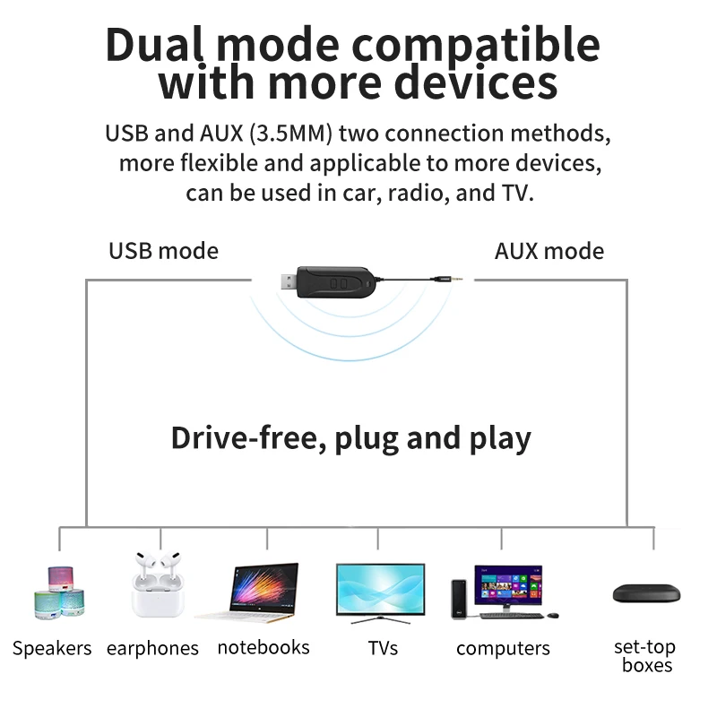 AYINO USB Bluetooth Dongle Adapter BT 5.3 Wireless Audio Computer Adapter AUX 3.5 RAC aptX HD Adaptive Speaker MusicTransmitter - Купить с бесплатной доставкой