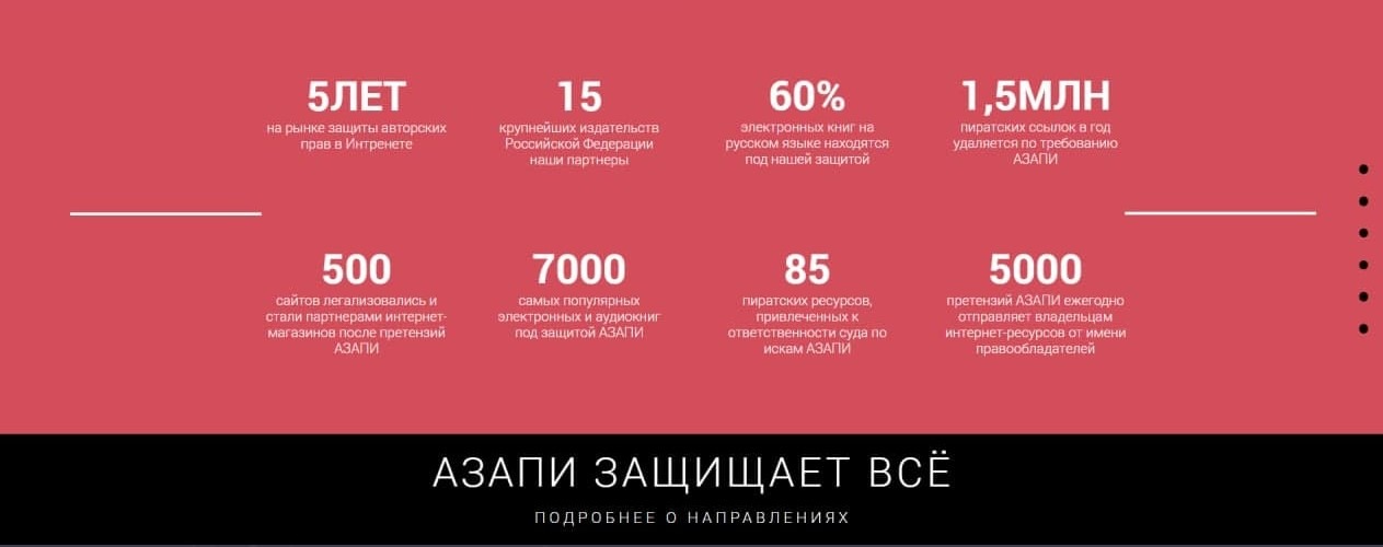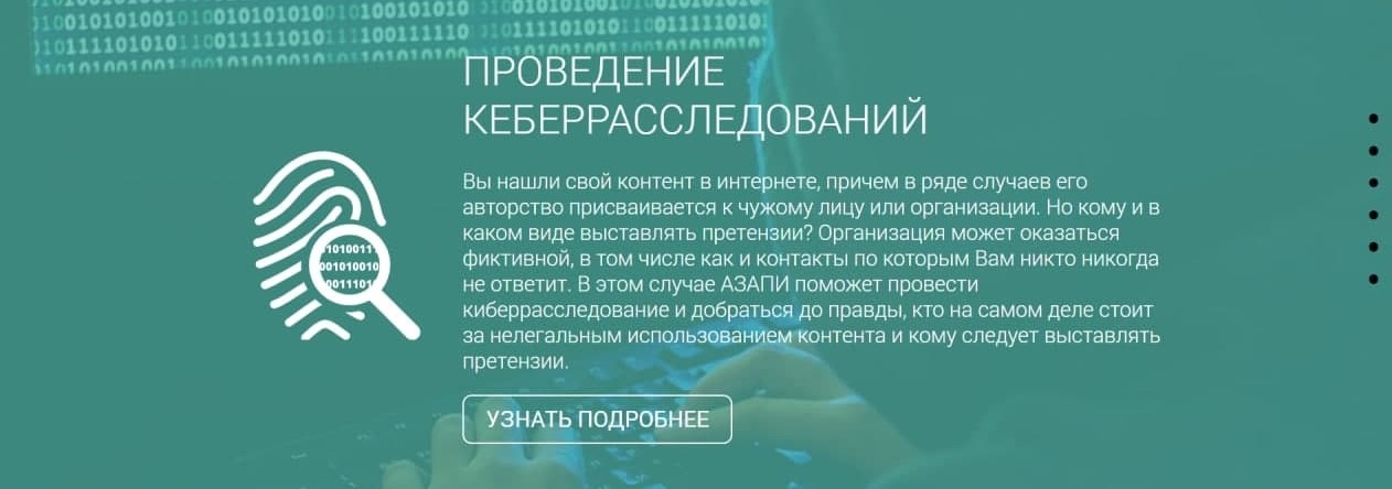 Кто же такие AZAPI? Это Ассоциация по защите авторских прав в интернете. На своём красивом сайте (http://azapi.ru/) без SSL правозащитники хвастаются трофеями: