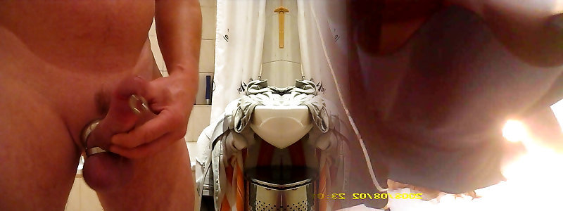 Luder in Dessous masturbiert auf dem Klo und pisst