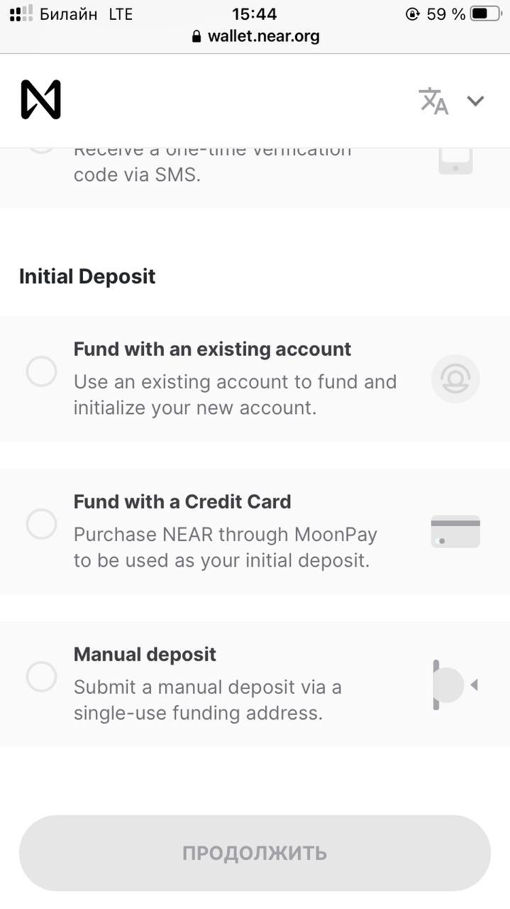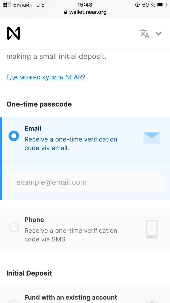 Регистрация на wallet.near.org :