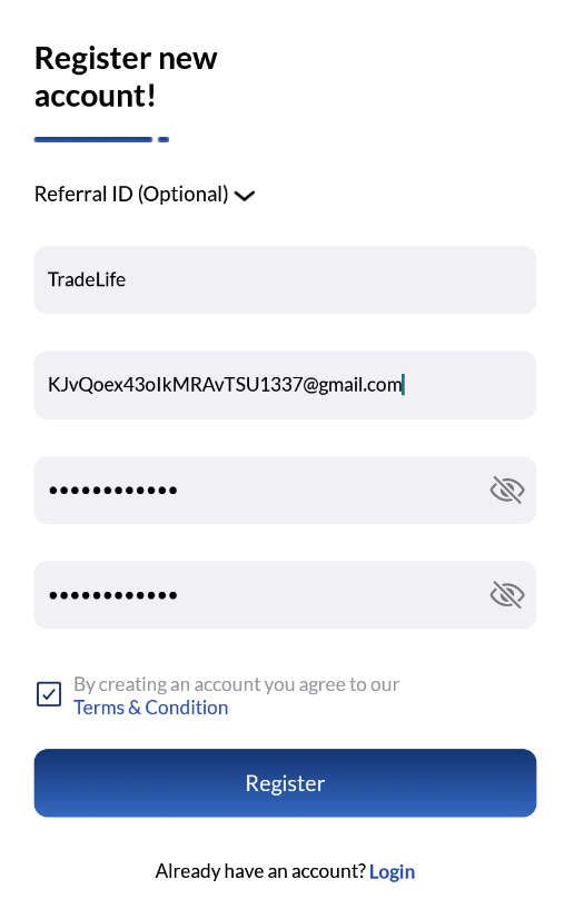 Далее вводим этот код oXrHlHY в окно реферал и заполняем остальные данные. Cоветую записывать все данные в таблицу Exel , чтобы не потерять данные.
