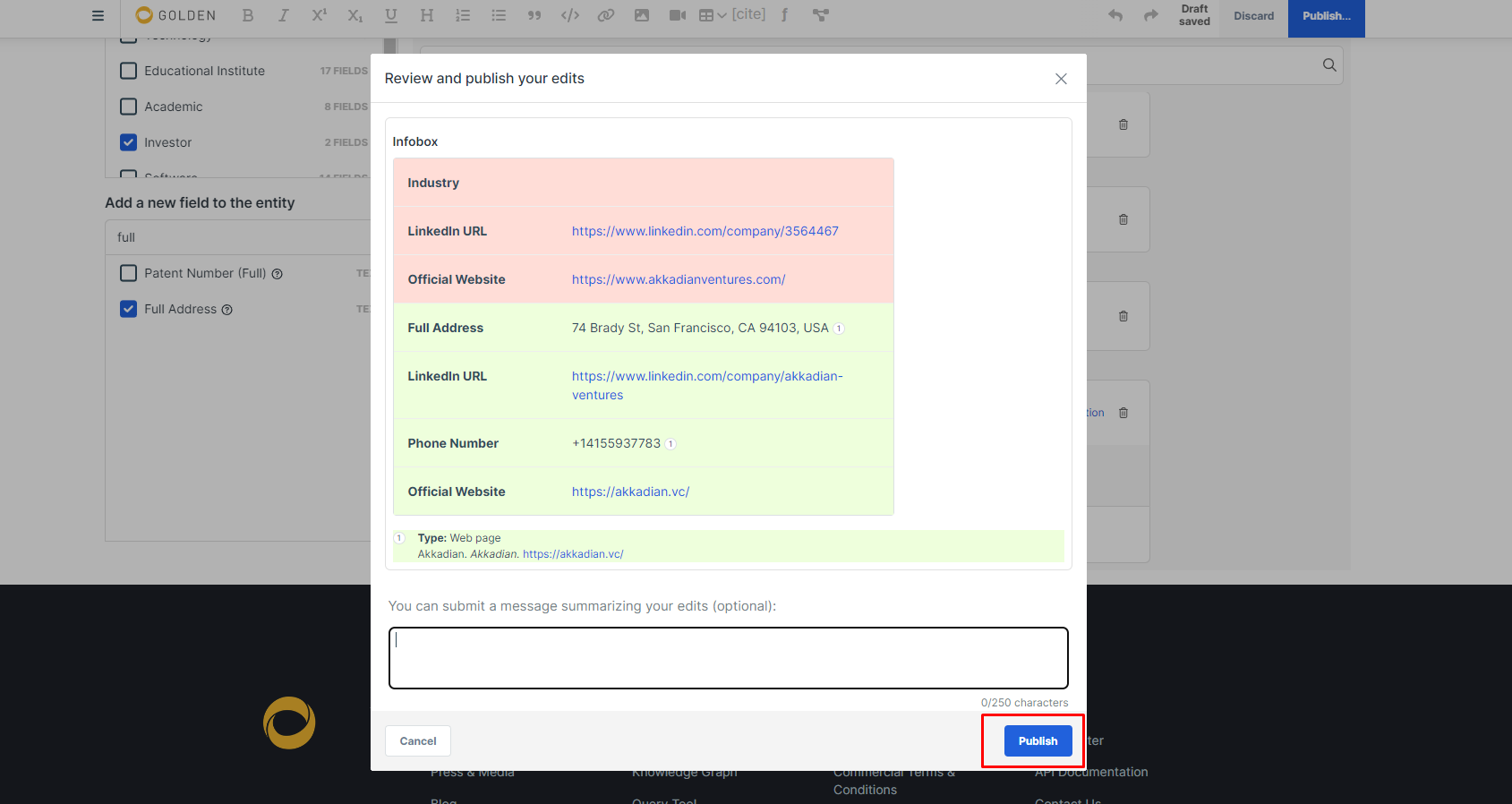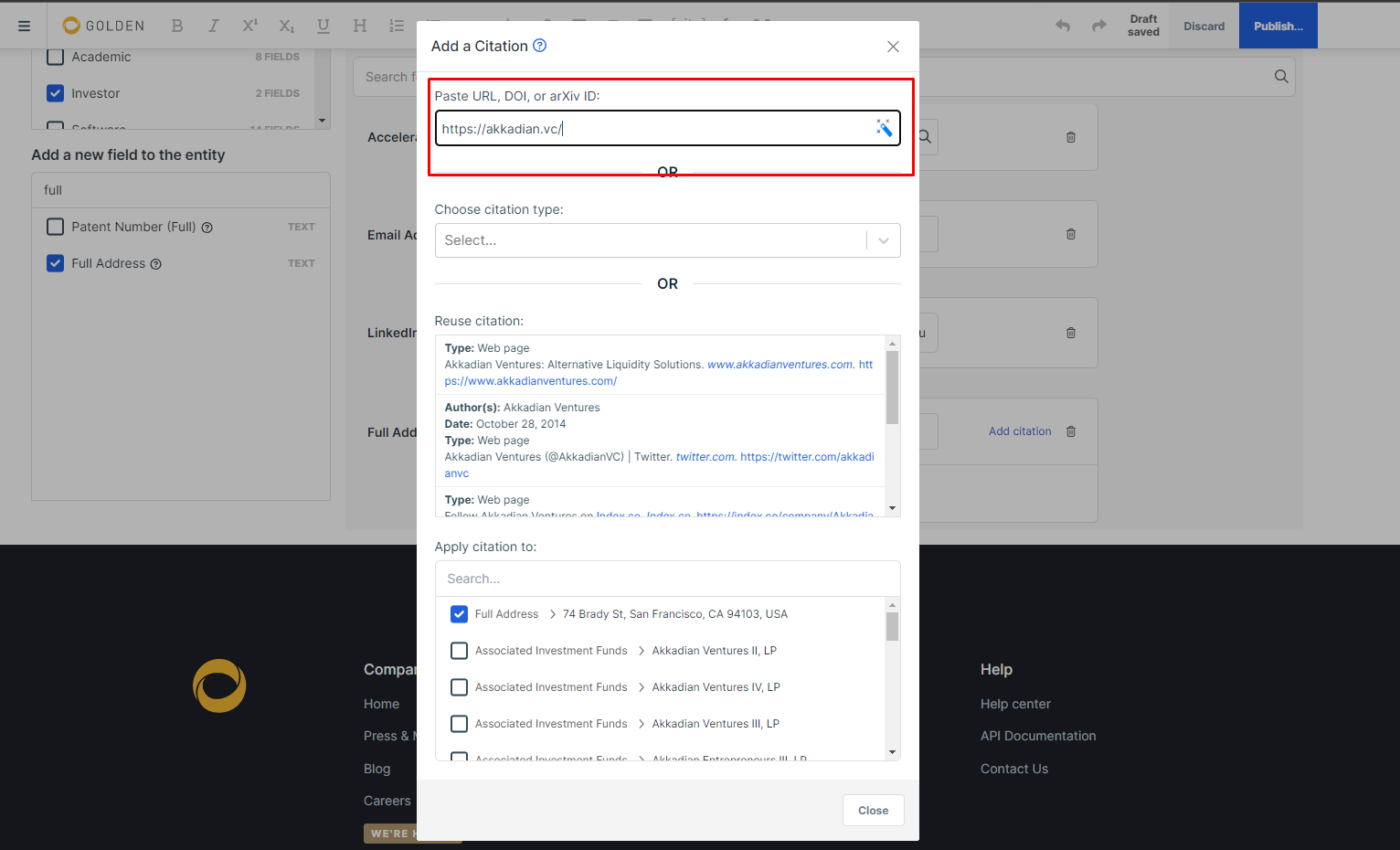 Предварительно вам нужно зарегистрироваться на Golden и заполнить свой профиль, привязав к нему кошелёк Metamask - https://golden.com/