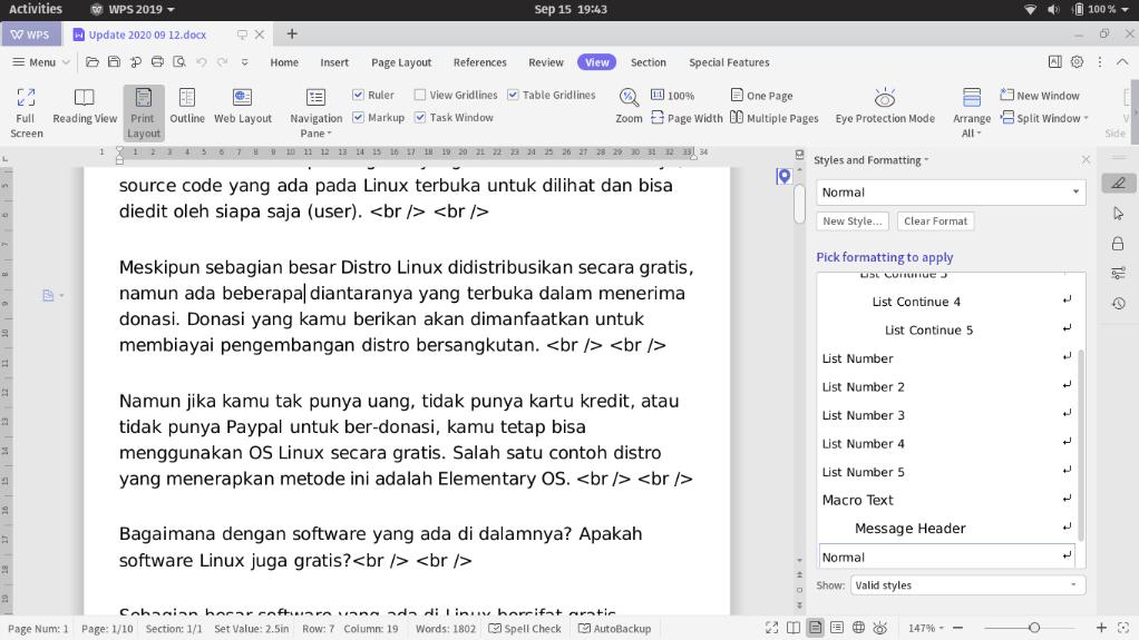 Абзацы в wps