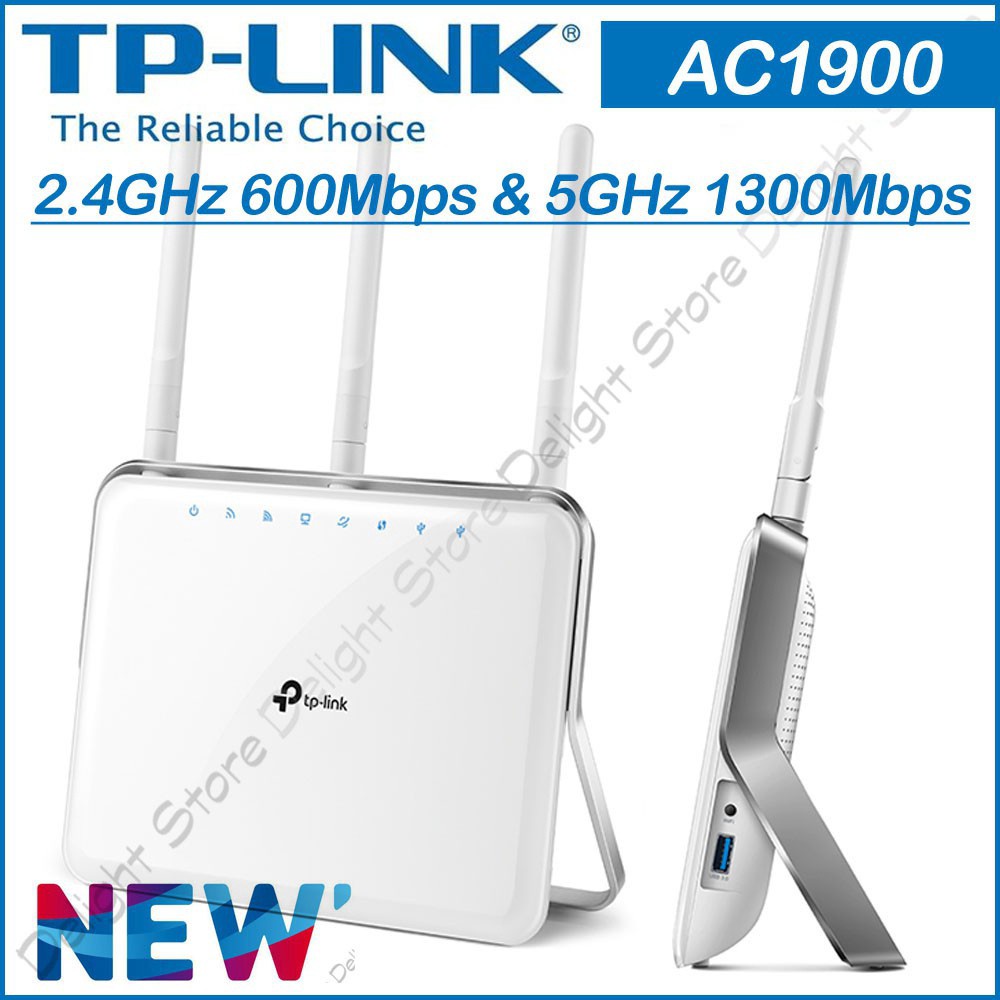 AC1900 Wireless Dual Band Gigabit Router . Supports 802 .11ac standard-the next generation of Wi-Fi . Simultaneous 2 .4GHz 600Mbps and 5GHz 1300Mbps connections for 1 .9Gbps of total available bandwidth . 3 dual band detachable antennas provide maximum omni-directional wireless coverage and reliability . Beamforming technology delivers highly . . .