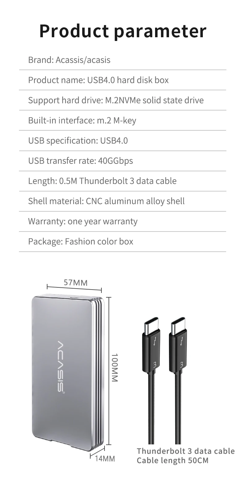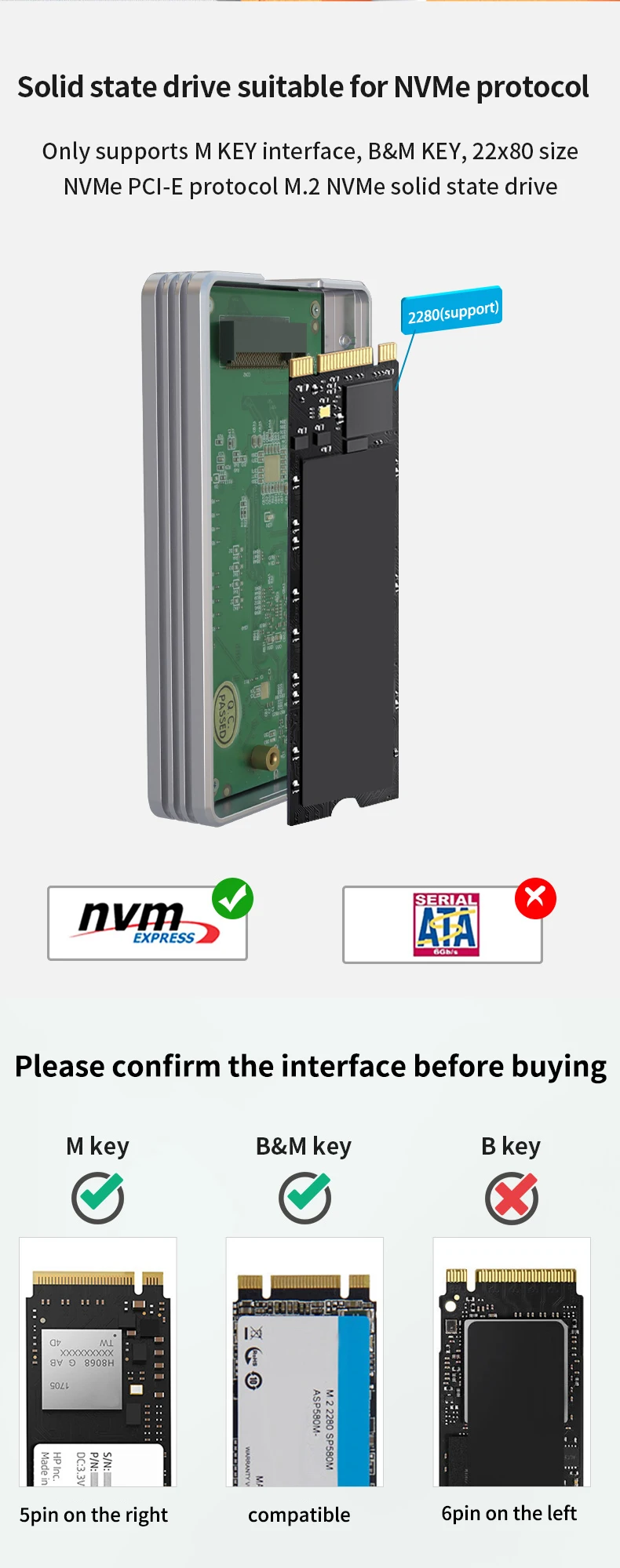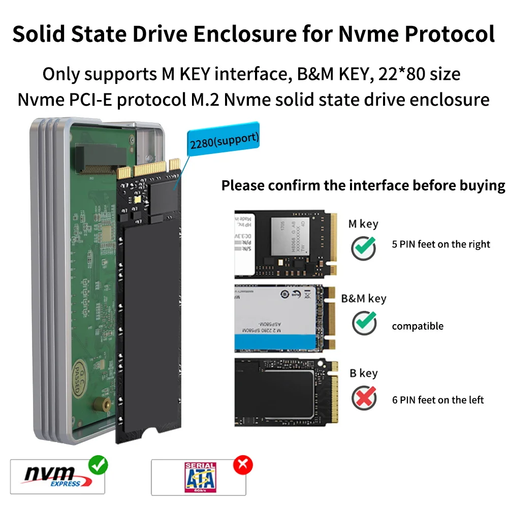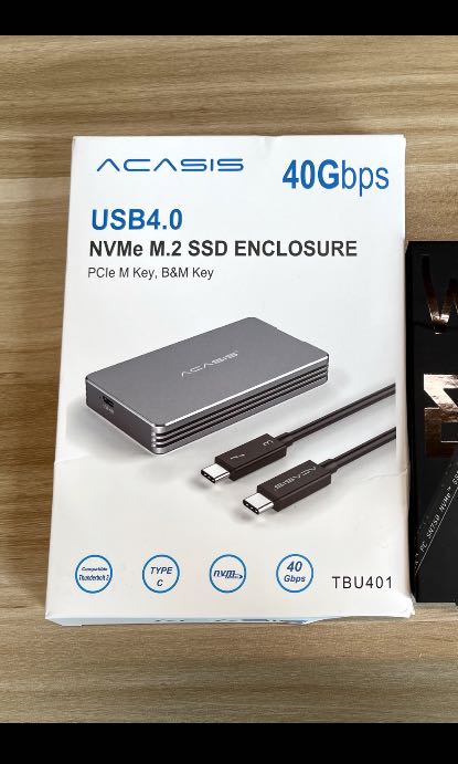 ACASIS USB4 .0 Nvme Enclosure,tools-free, 40Gbp/s transmission Only supports M KEY interface, B&M KEY, 22*80 size Nvme PCI-E protocol M .2 Nvme solid state drive enclosure Dedicated USB4 .0 C to C data cable .Compatible with Windows/Mac and other multi-platform operating systems .Notice,this nvme does not support Samsung 970 EVO Plus SSD and Ipad .