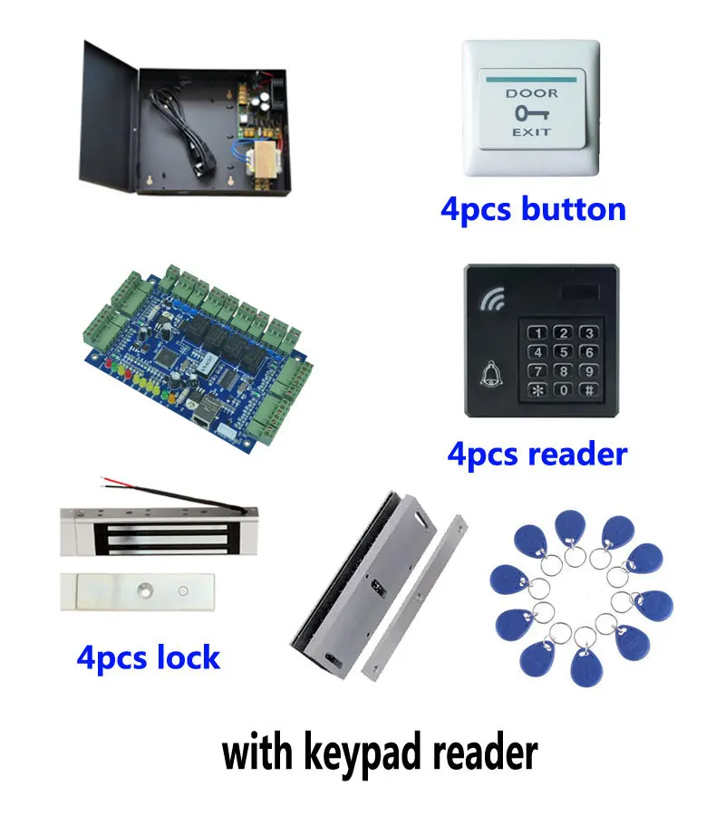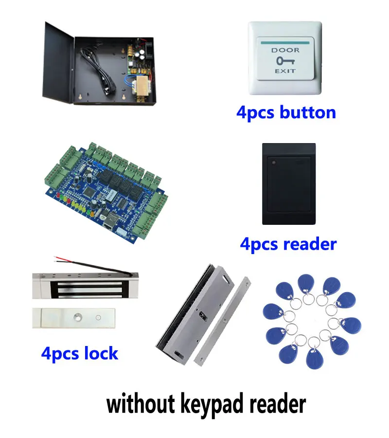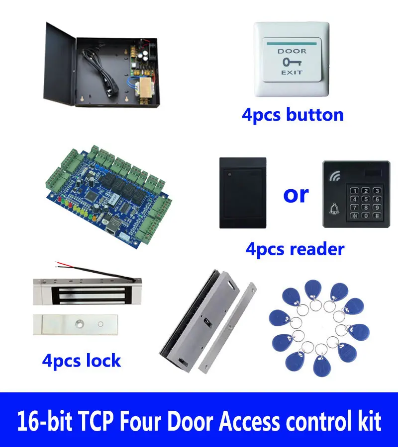 Access Control Kit,TCP Four Door Access Control+Powercase+180kg Magnetic Lock+U-Bracket+ID Reader+Button+10 ID Tag,Sn:Kit-B404 - Купить с бесплатной доставкой