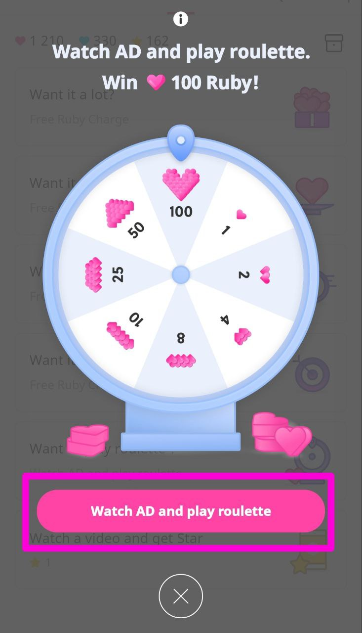 В новой версии приложения с рулеткой вы можете посмотреть до 10 реклам в день, за каждую даётся от 1 до 100 сердец.