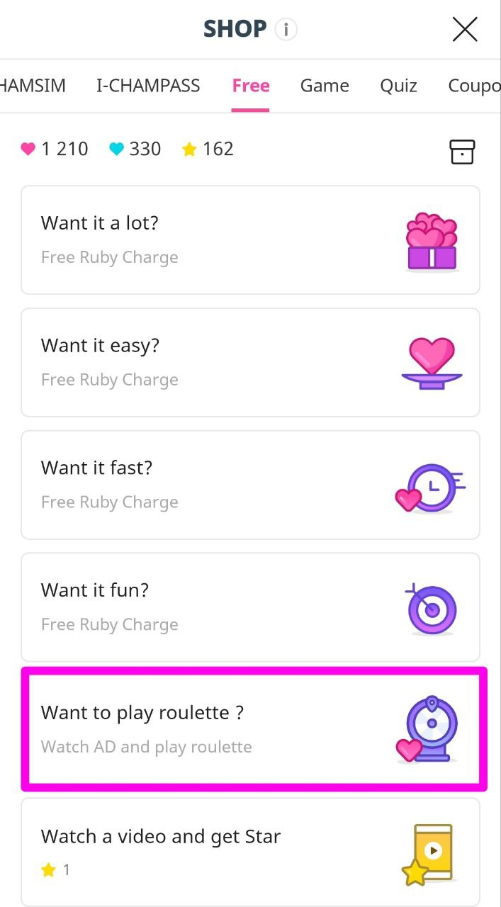 В более новых версиях приложения доступен иной способ получить розовые сердца – рулетка.