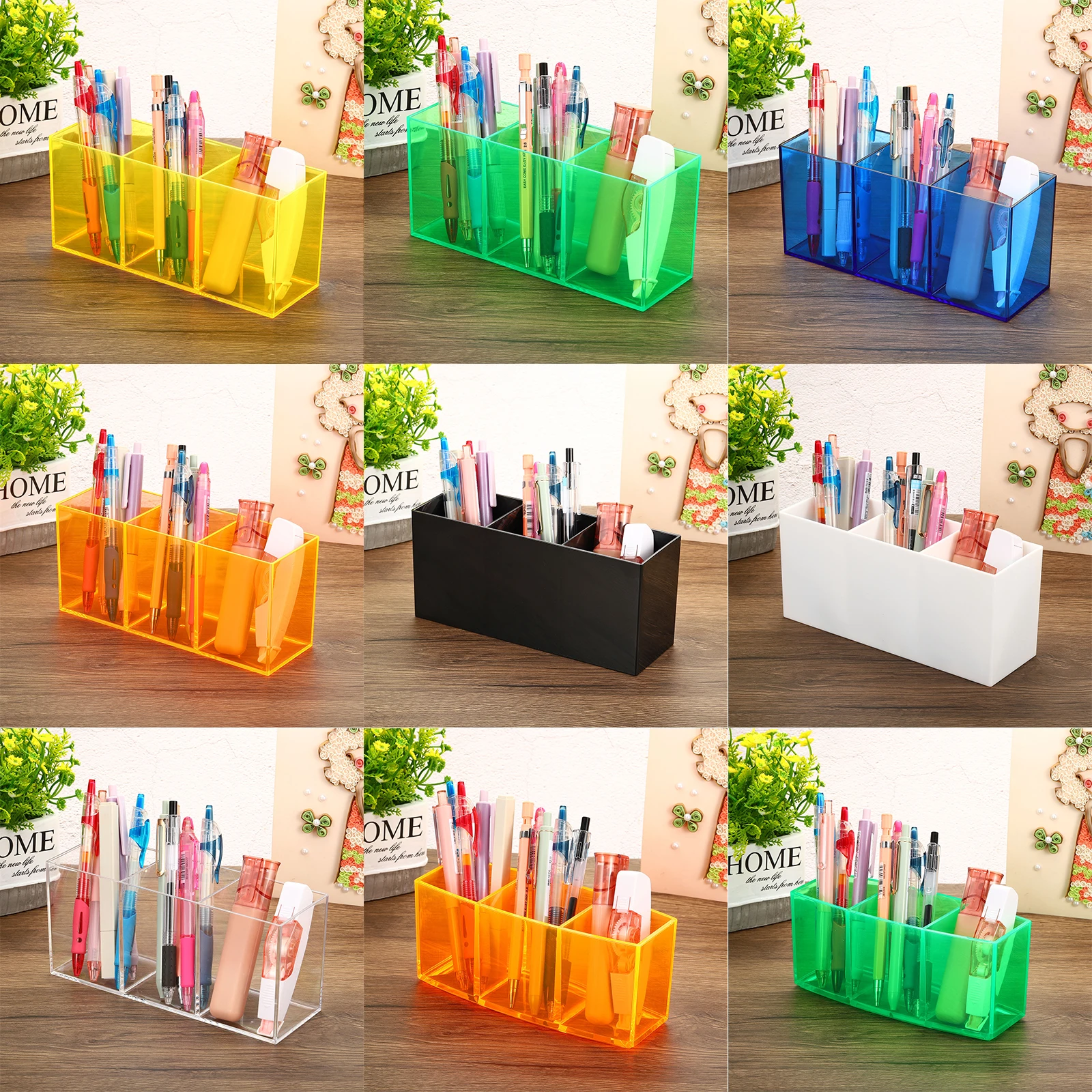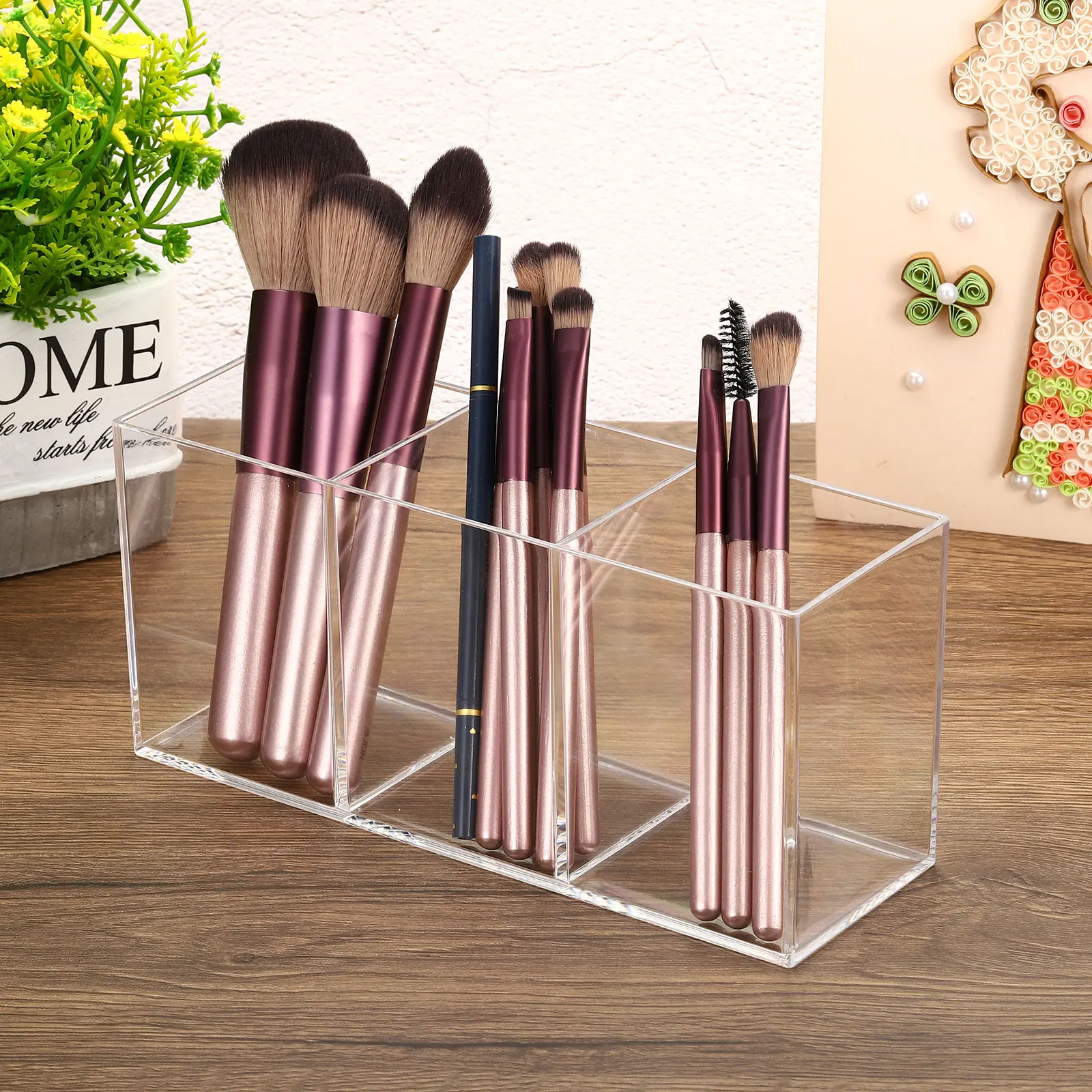 ClXluPQGHere you can buy Acrylic Stationery Pen Holder Makeup Brush Eyebrow Pencil Storage Rack Three Compartments Large Capacity Transparent Storage Box with free delivery to your post office.