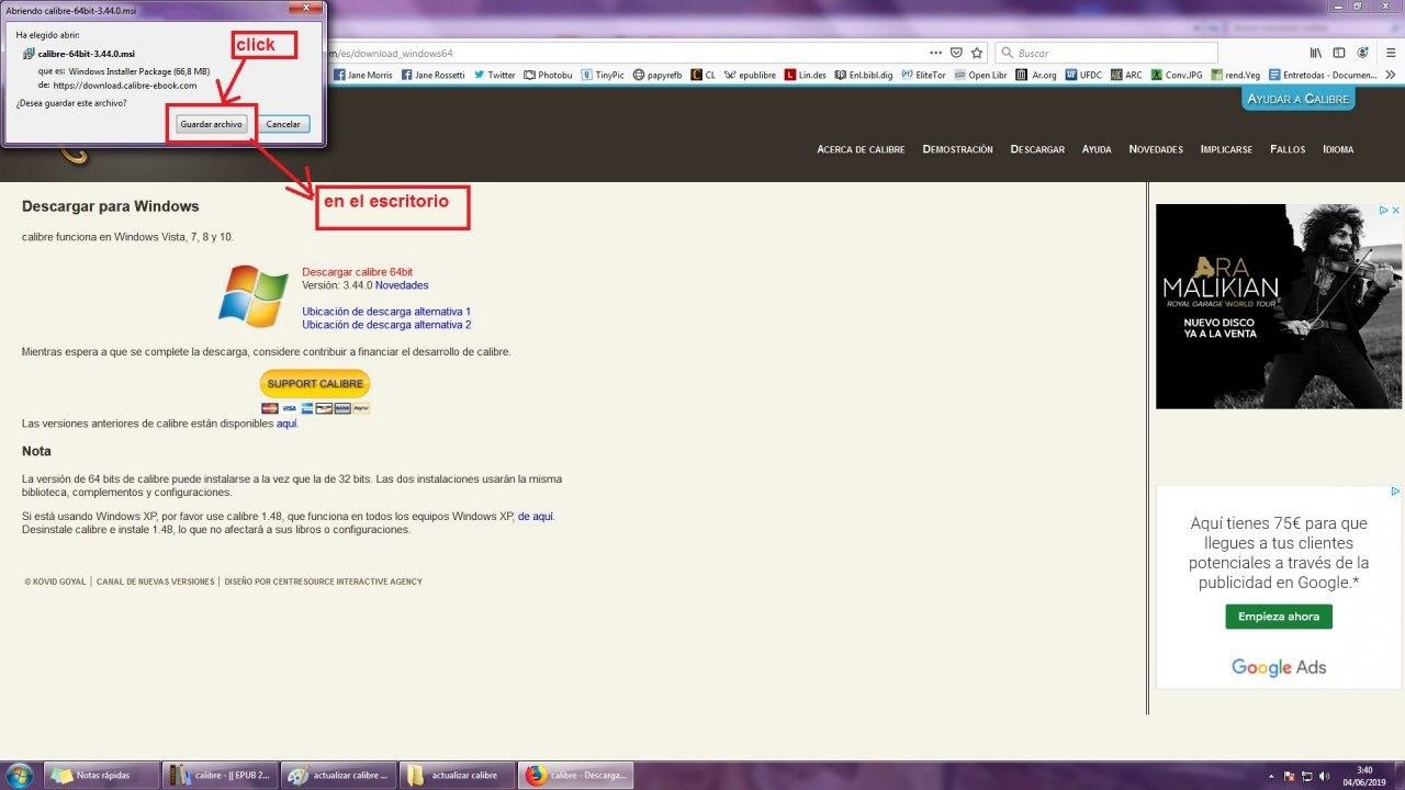 https://download.calibre-ebook.com/3.48.0/ y elegimos si es de 32 o 64 bits.