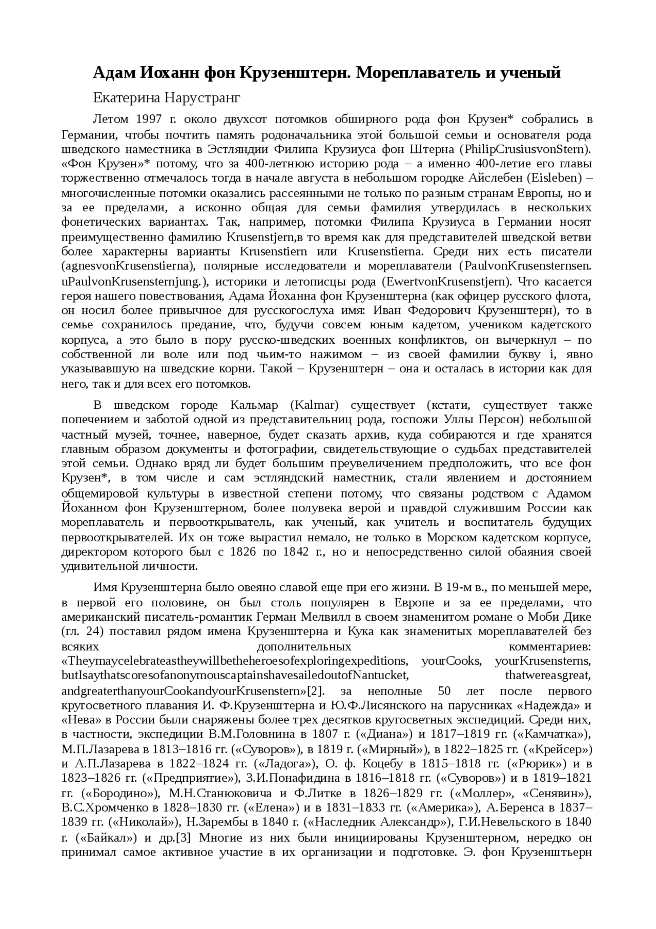Урожденный Адам Йоханн фон Крузенштерн ( Adam Johann von Krusenstern) . Родился 19 ноября 1770 года в Хаггуде . . . . Более полувека служивший России как мореплаватель, как ученый - вырастил и воспитал немало . . .