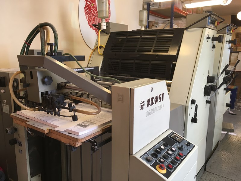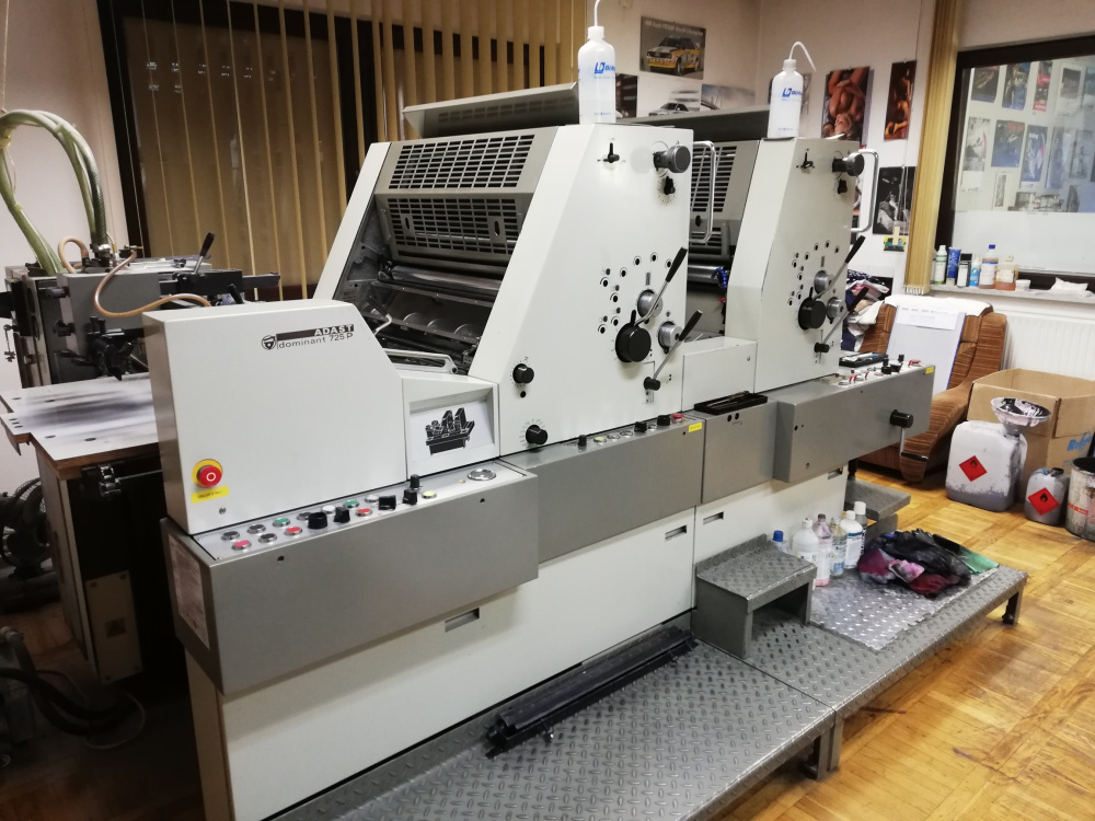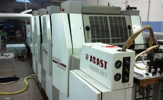 Adast – один из мировых лидеров-производителей печатного оборудования. Наиболее известная марка машин именуется «Dominant», особо популярная модель – 725. Это прогрессивный вид печатного оборудования офсетного типа. Такие аппараты удовлетворяют все требования заказчиков, а продукция получается качественной и долговечной. Машины надежны, служат очень долго и просты в эксплуатации. Adast Dominant дает возможность точно воспроизводить растровые точки и легко справляется даже с многокрасочной печатью.