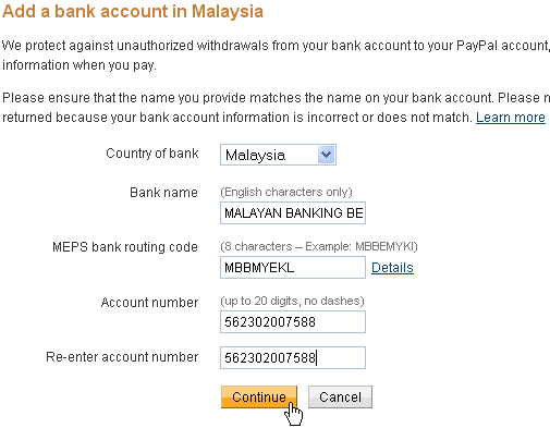 Add bank account