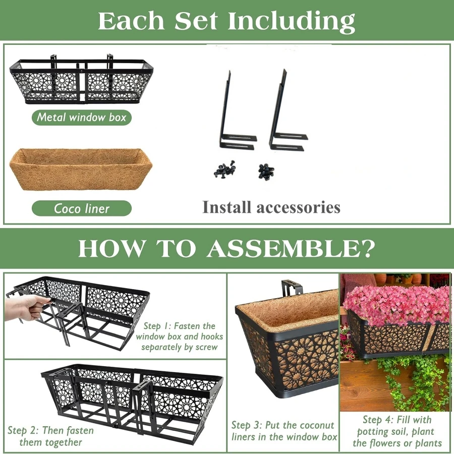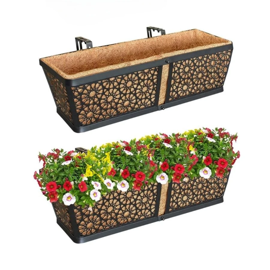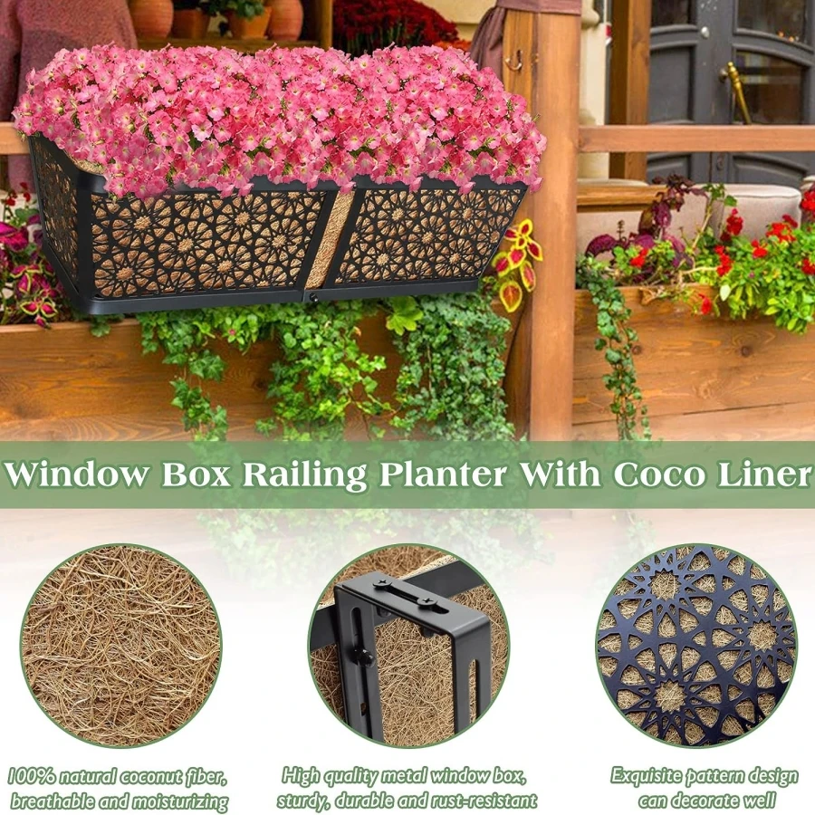 UoQiSqZgHere you can buy Adjustable Metal Window Box Railing Planter with Coco Liner, Black Hanging Deck Railing Flower Planter Box, Outdoor Fence Porch with free delivery to your post office.