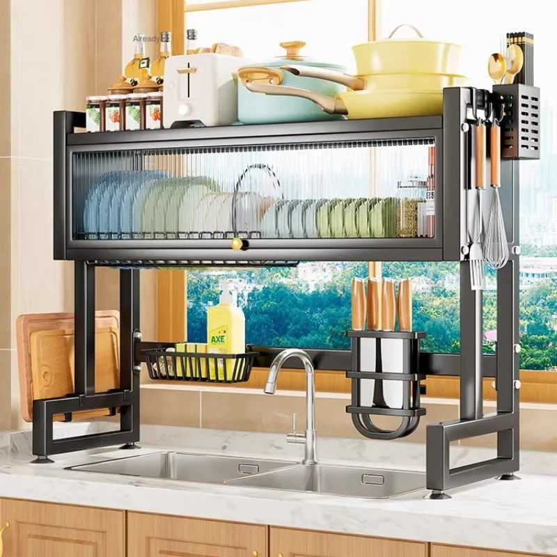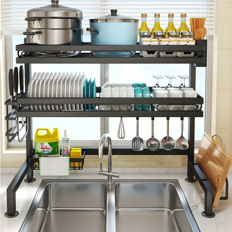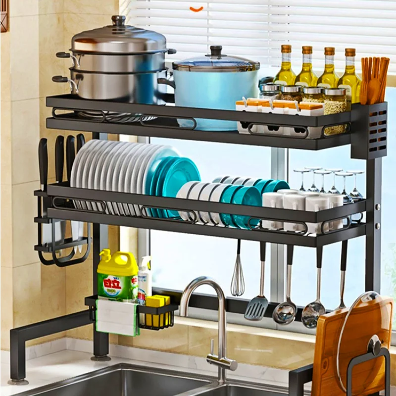 XwZoElZGERHere you can buy Adjustable Non-perforated Space-saving Double-layer Sink Rack with High Bearing Capacity for Kitchen Sink Storage with free delivery to your post office.