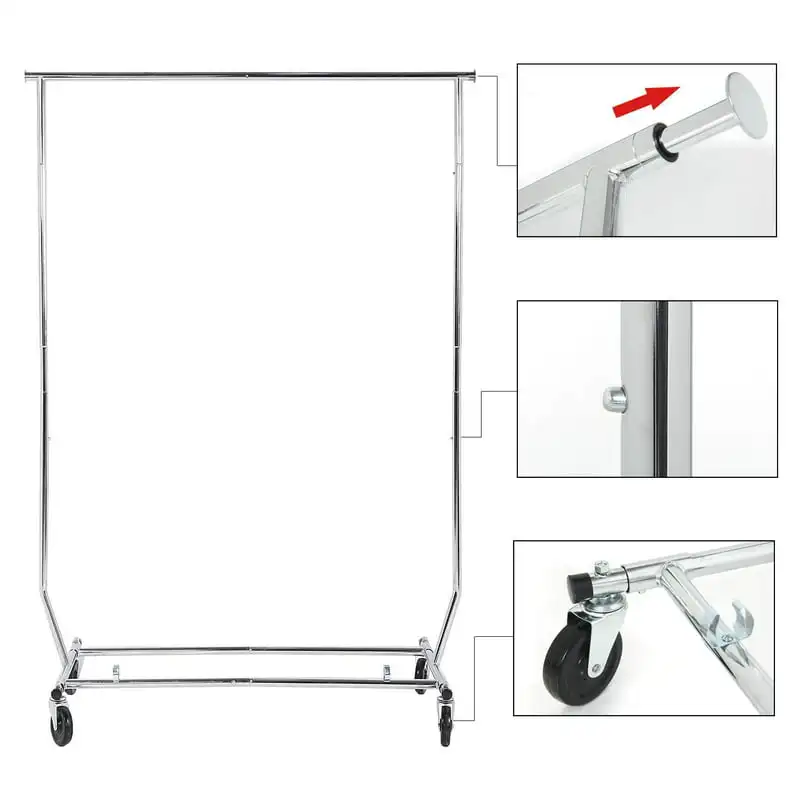 LUANwRboHere you can buy Adjustable Rolling Garment Rack - Collapsible - Chrome - 22" x 51" x 71.25" with free delivery to your post office.